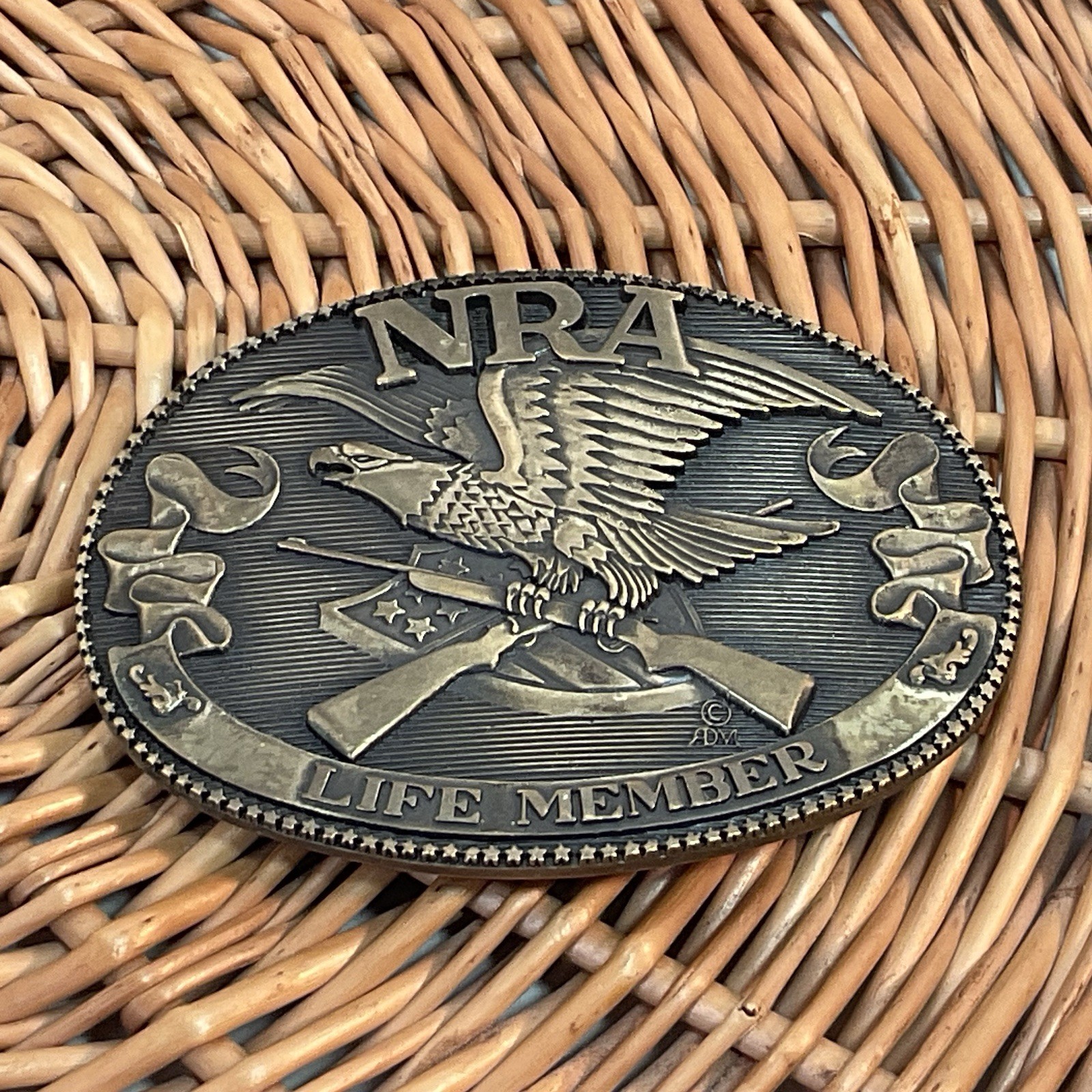 NRA Life Member Belt Buckle Brass USA National Rifle Association Western Guns