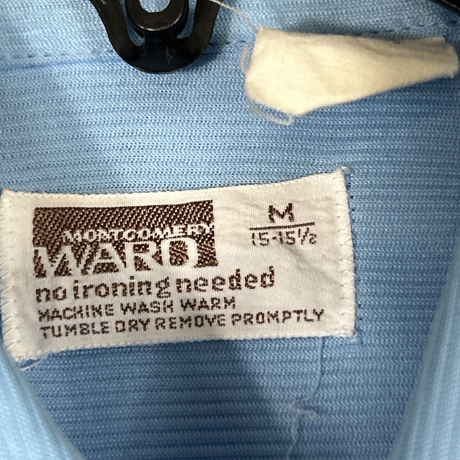 как выглядит Vtg 70s Blue Disco Dagger Long Collar Button Up Men s Dress Shirt M 15-15.5 фото
