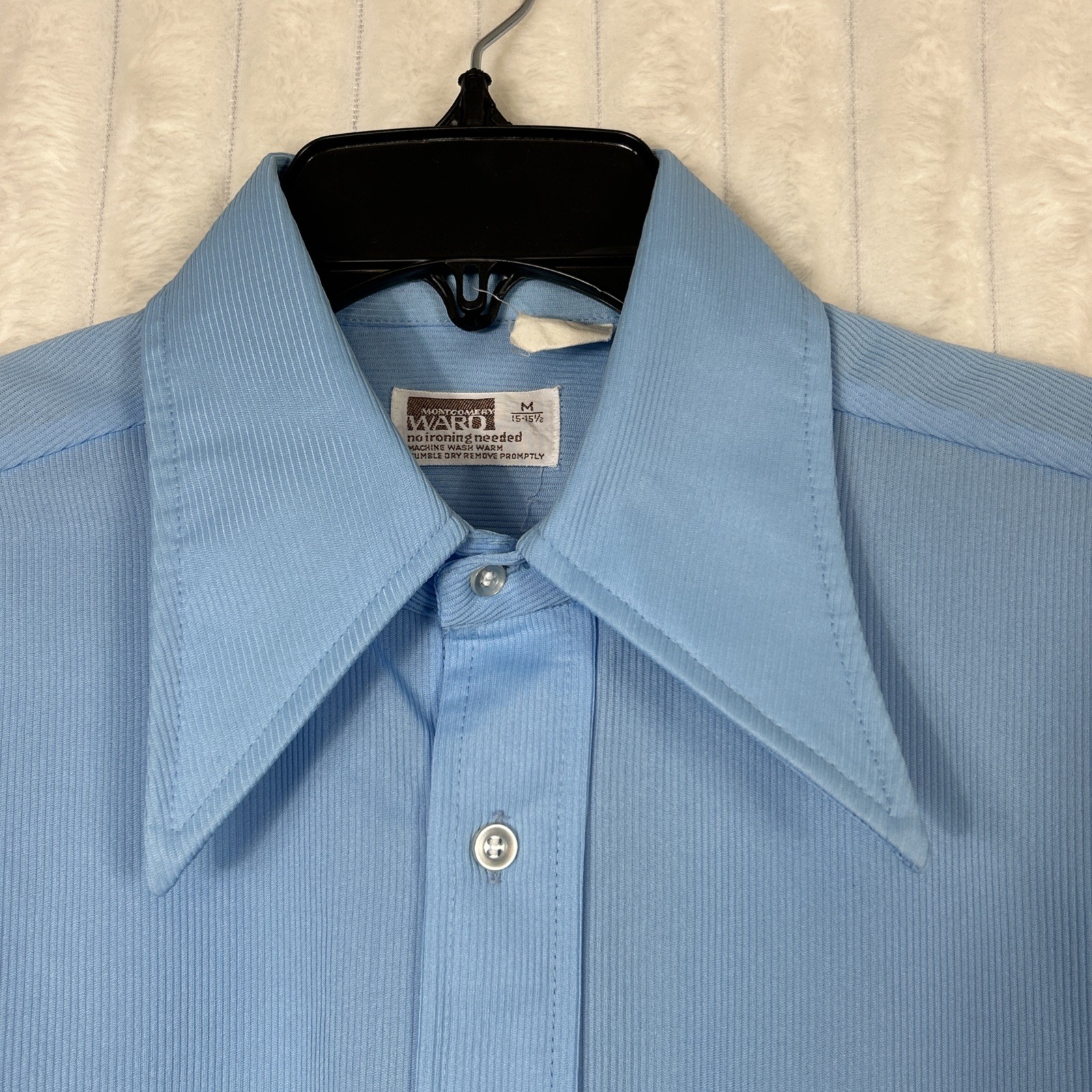 Vtg 70s Blue Disco Dagger Long Collar Button Up Men s Dress Shirt M 15-15.5