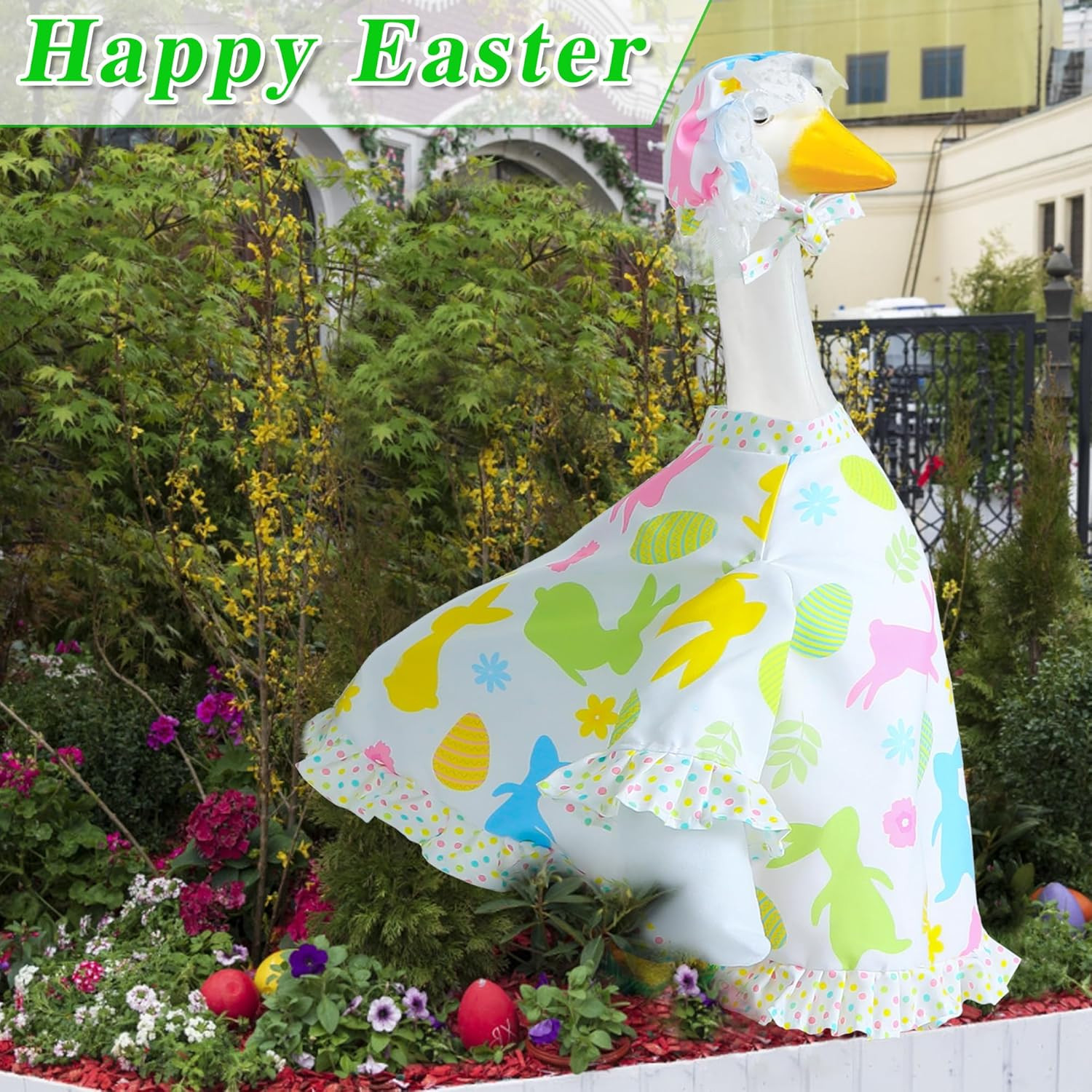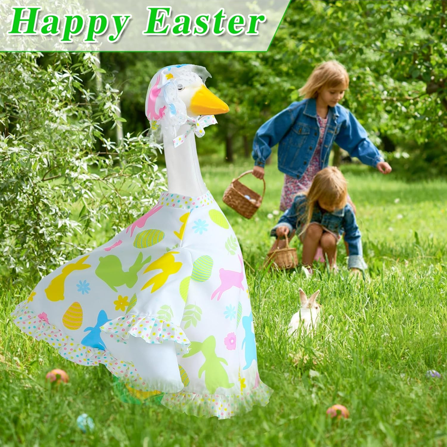 Easter Goose Outfit for 23 Cement Porch Goose Statue - Spring Outdoor Patio Yar