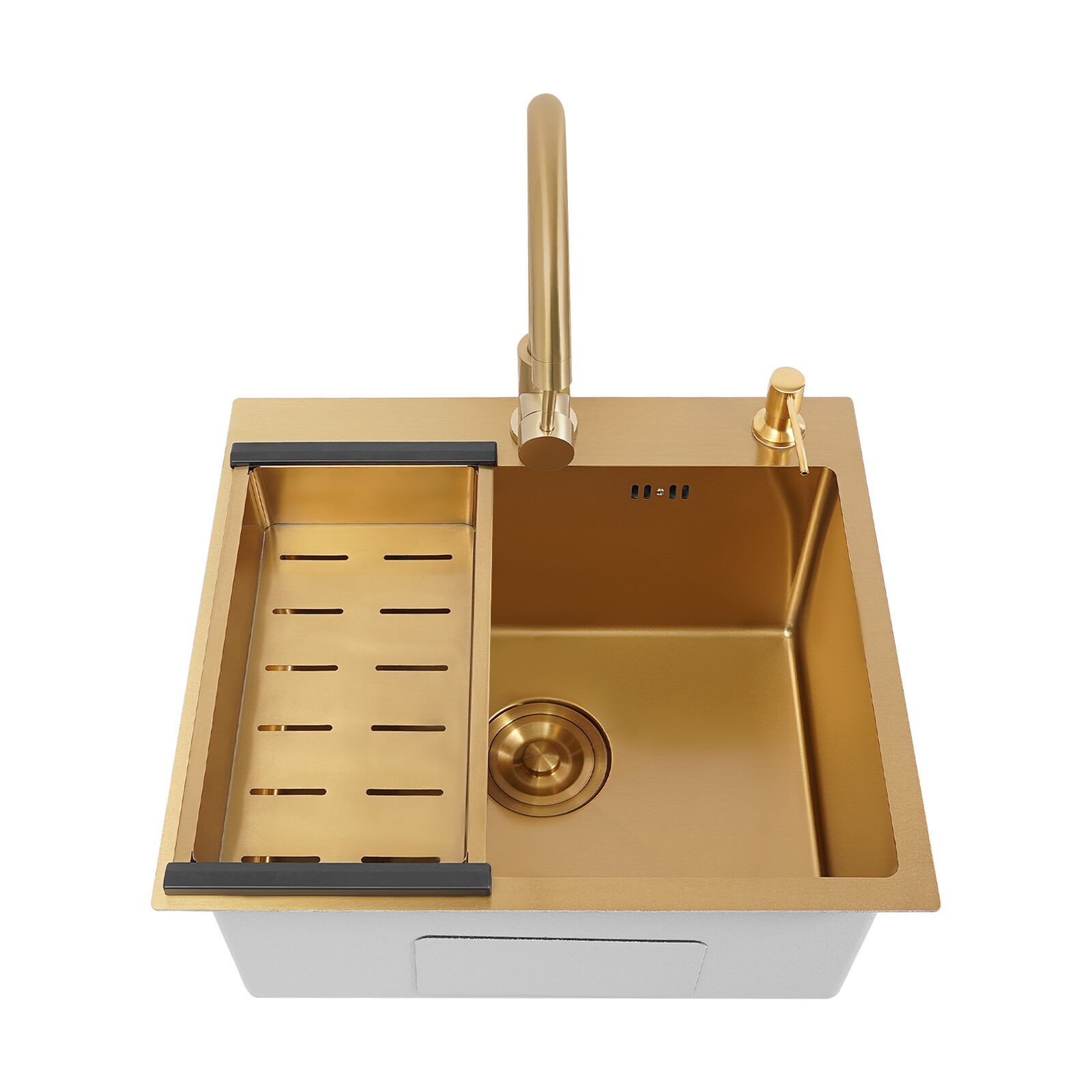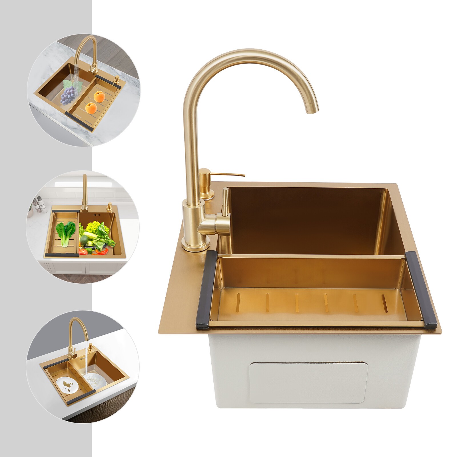 Stainles Steel Kitchen Sink W/ Faucet Drain Basket Household Workstation