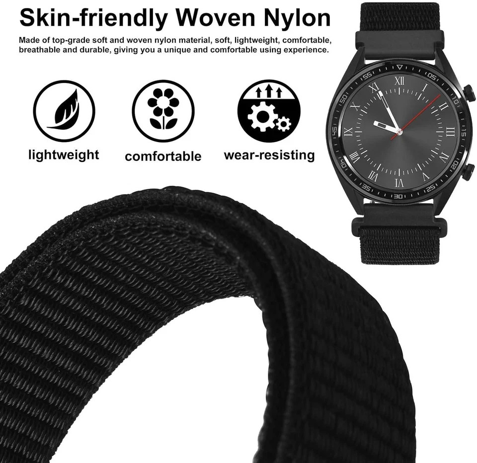 24Mm Adjustable Nylon Watch Band, Quick Release Sport Loop Strap Black