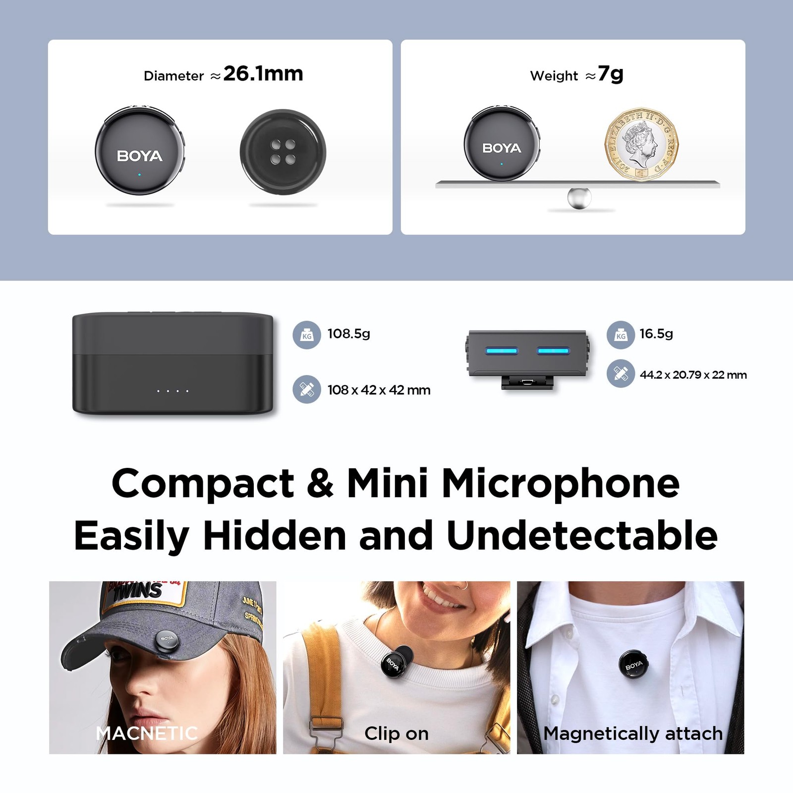 как выглядит BOYALINK 3 Mini Microphone for Camera/iPhone/Android, Wireless Lavalier Micro... фото