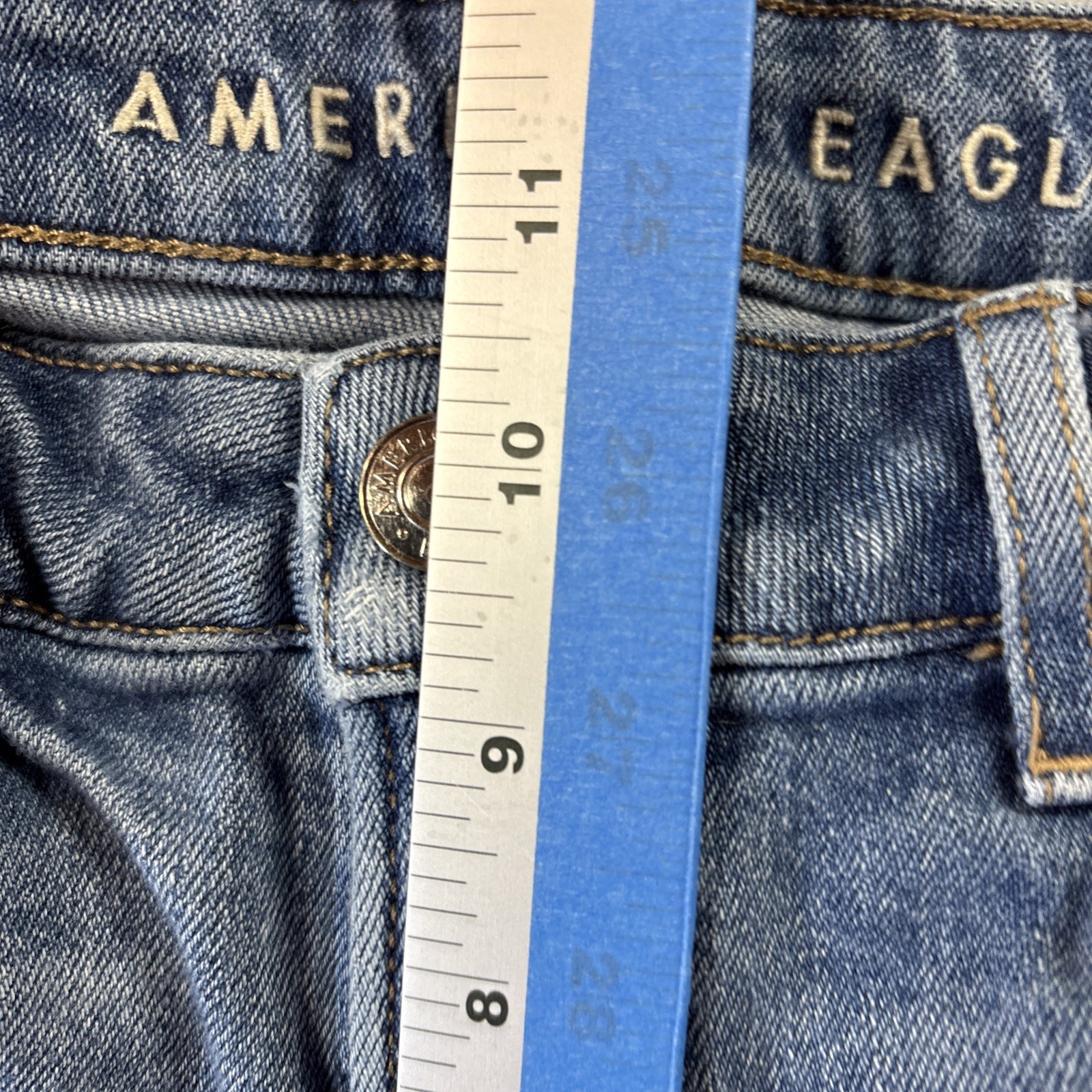как выглядит American Eagle Mom Jean Blue Denim Stretch Womens Size 4 High Rise фото