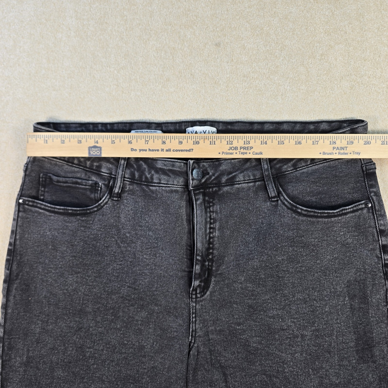 как выглядит Ava Viv High Rise Slim Straight Jeans Raw Hem Black 20W NWT фото