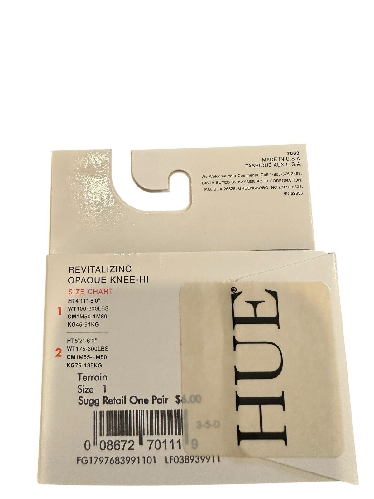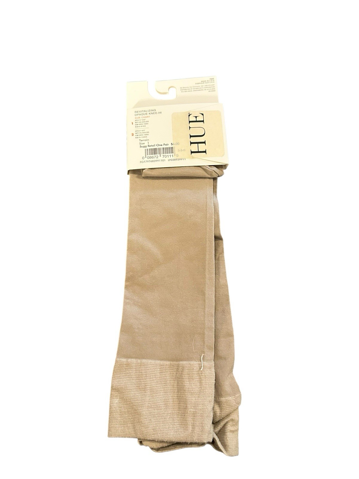 Vntg Hue Comfort Top Cotton Nylon 6487 Knee-Hi Sock size 1 Women's 1pr Opaque