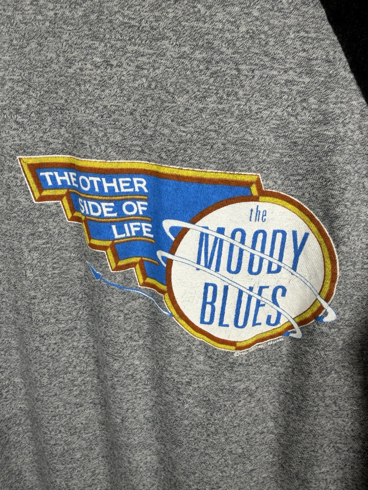 как выглядит Vintage 1986 Moody Blues The Other Side of Life Live in Concert Raglan M 18x26 фото