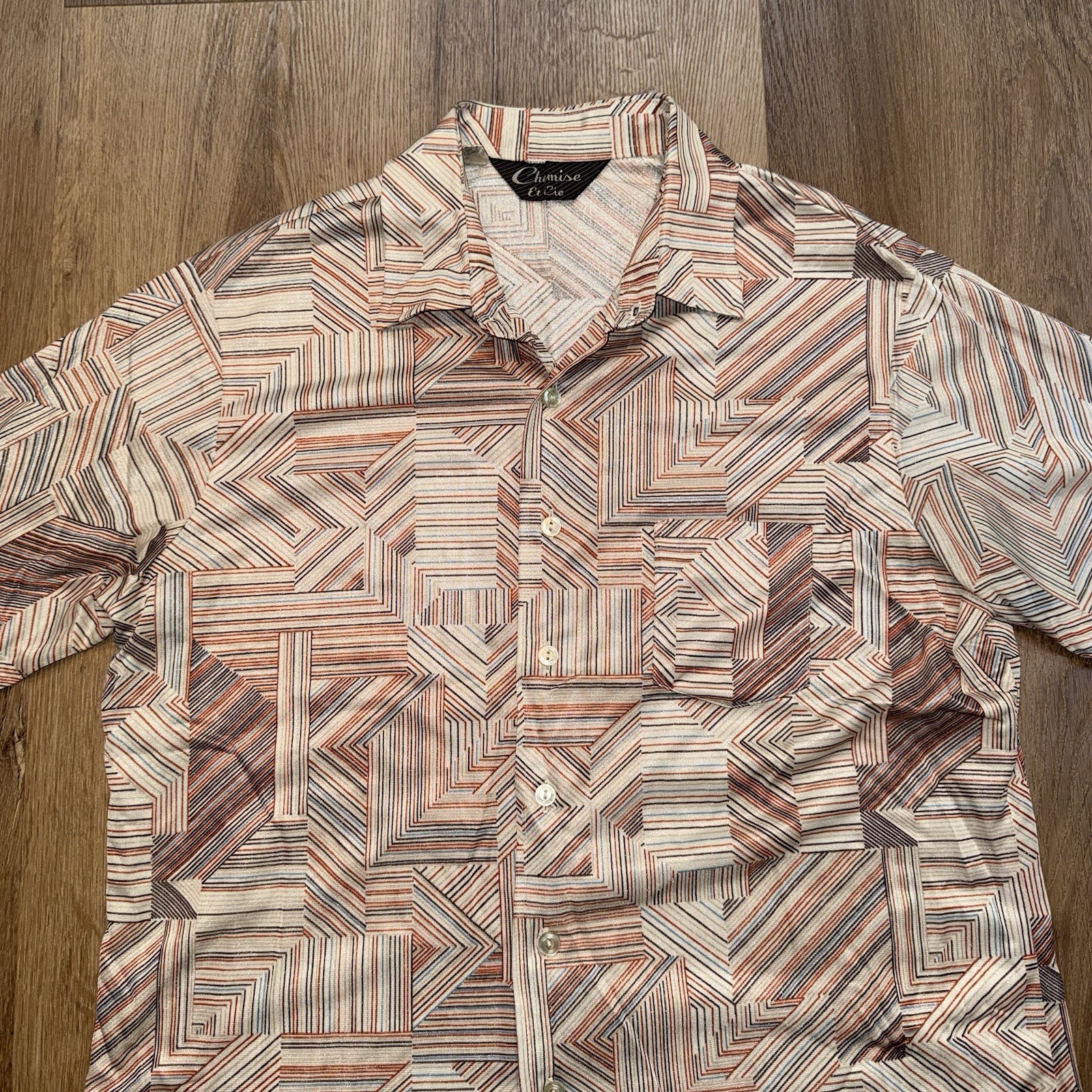 как выглядит Vtg 60s 70s Disco Shirt Mens Chemise Et Cie Nylon Hippy Mod Nik Geometric XL фото