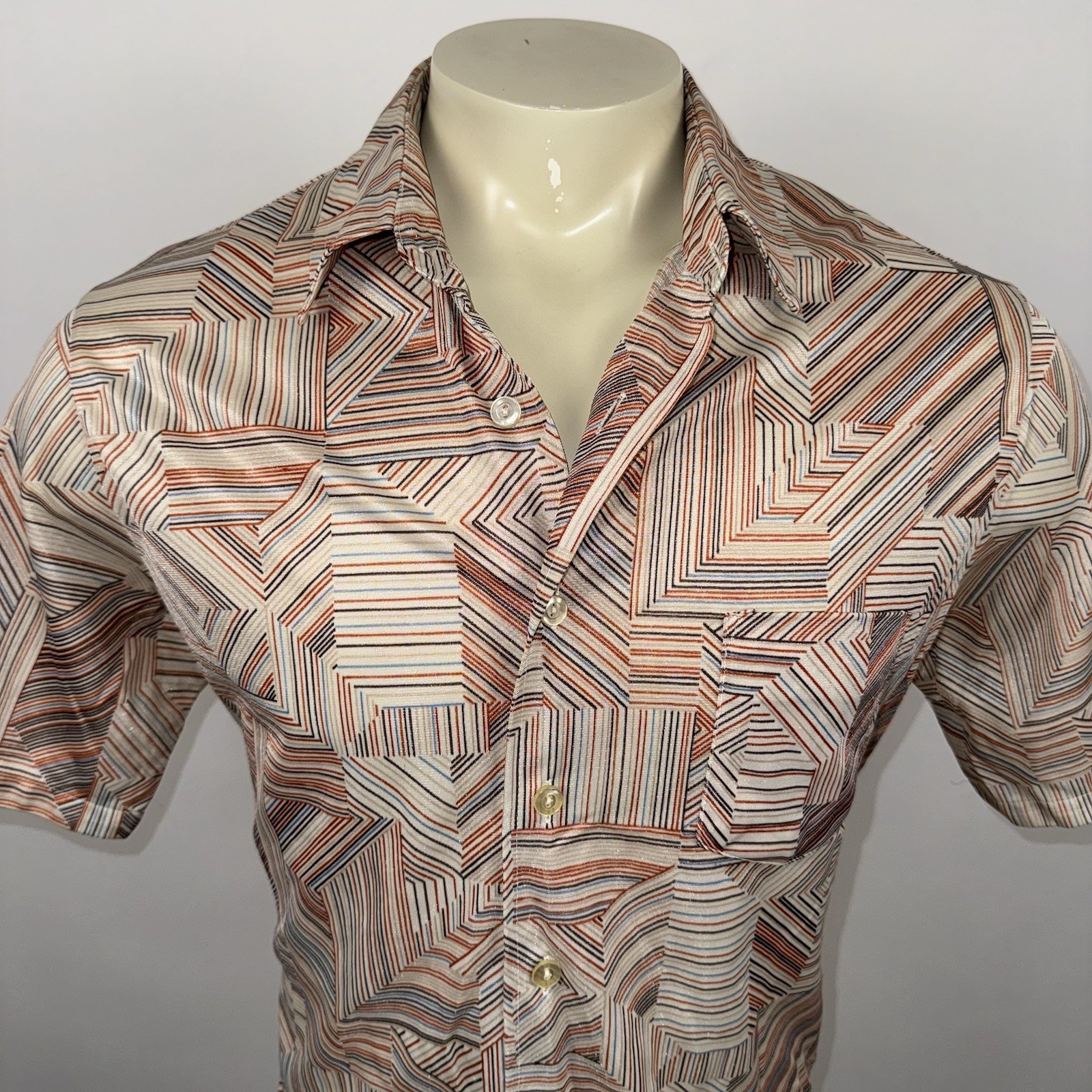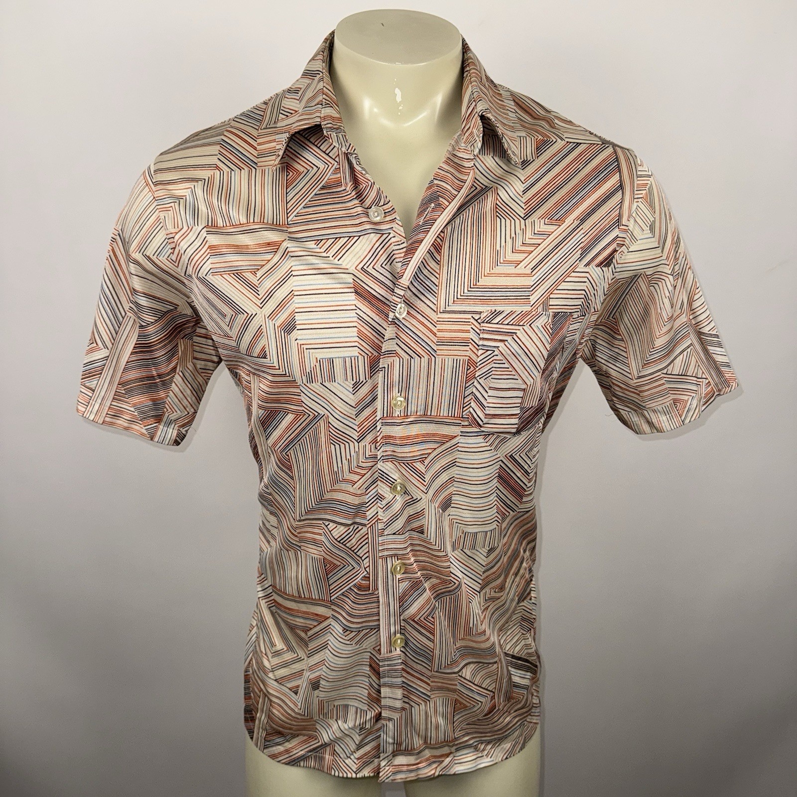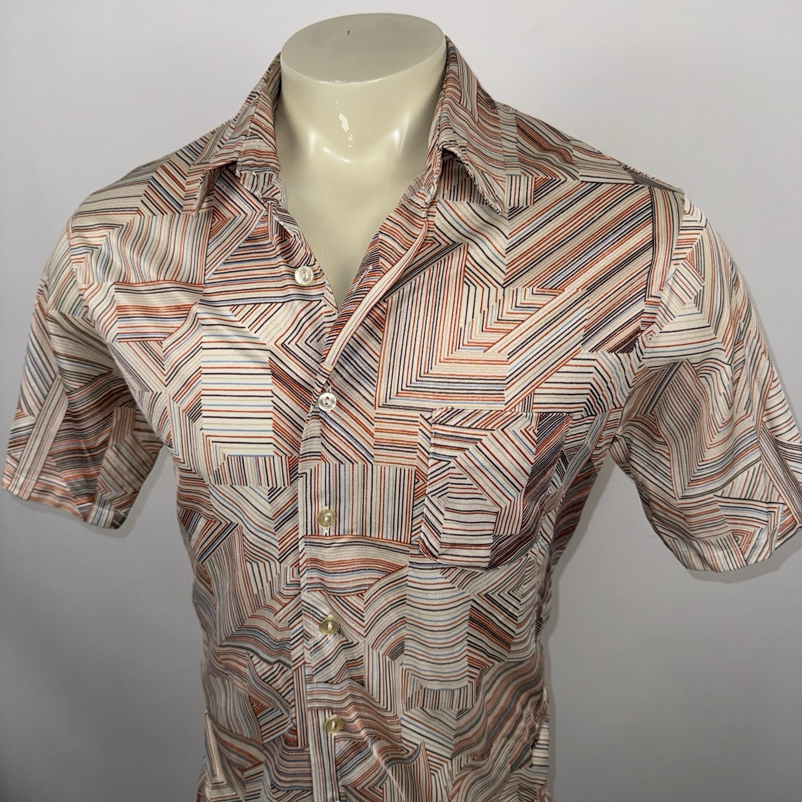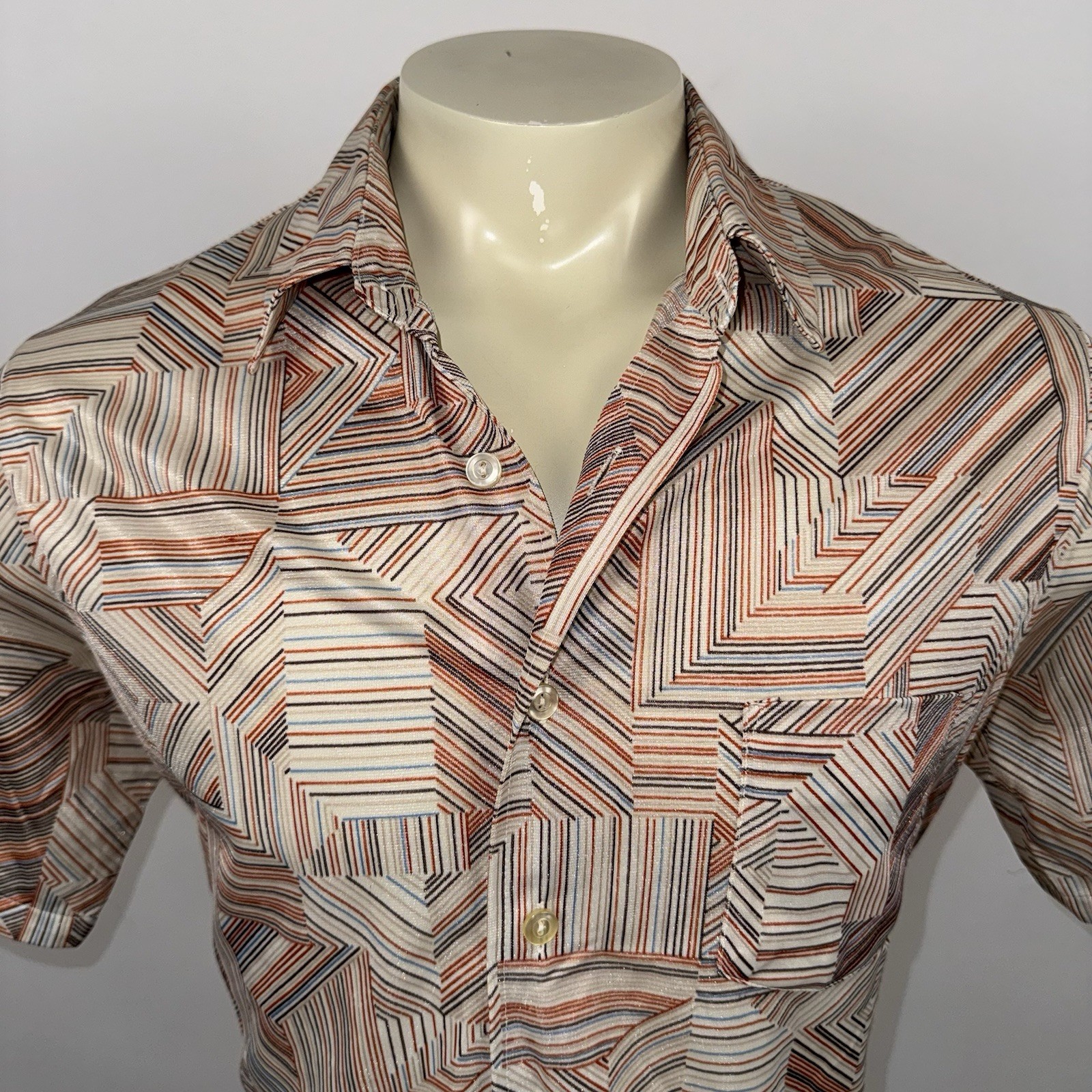 Vtg 60s 70s Disco Shirt Mens Chemise Et Cie Nylon Hippy Mod Nik Geometric XL