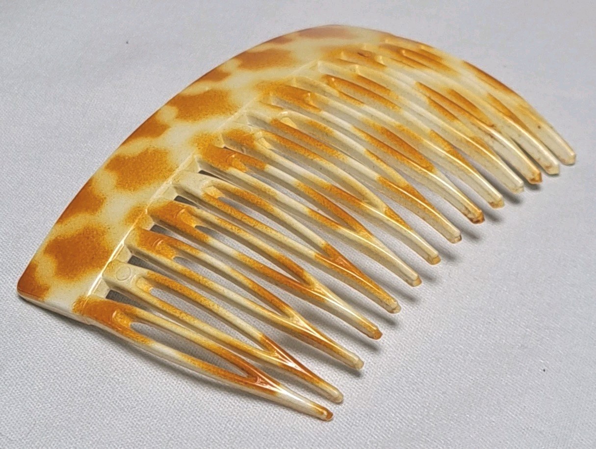 как выглядит Vintage Faux Tortoise Modele Depose Side Hair Comb Made In France 1970s фото