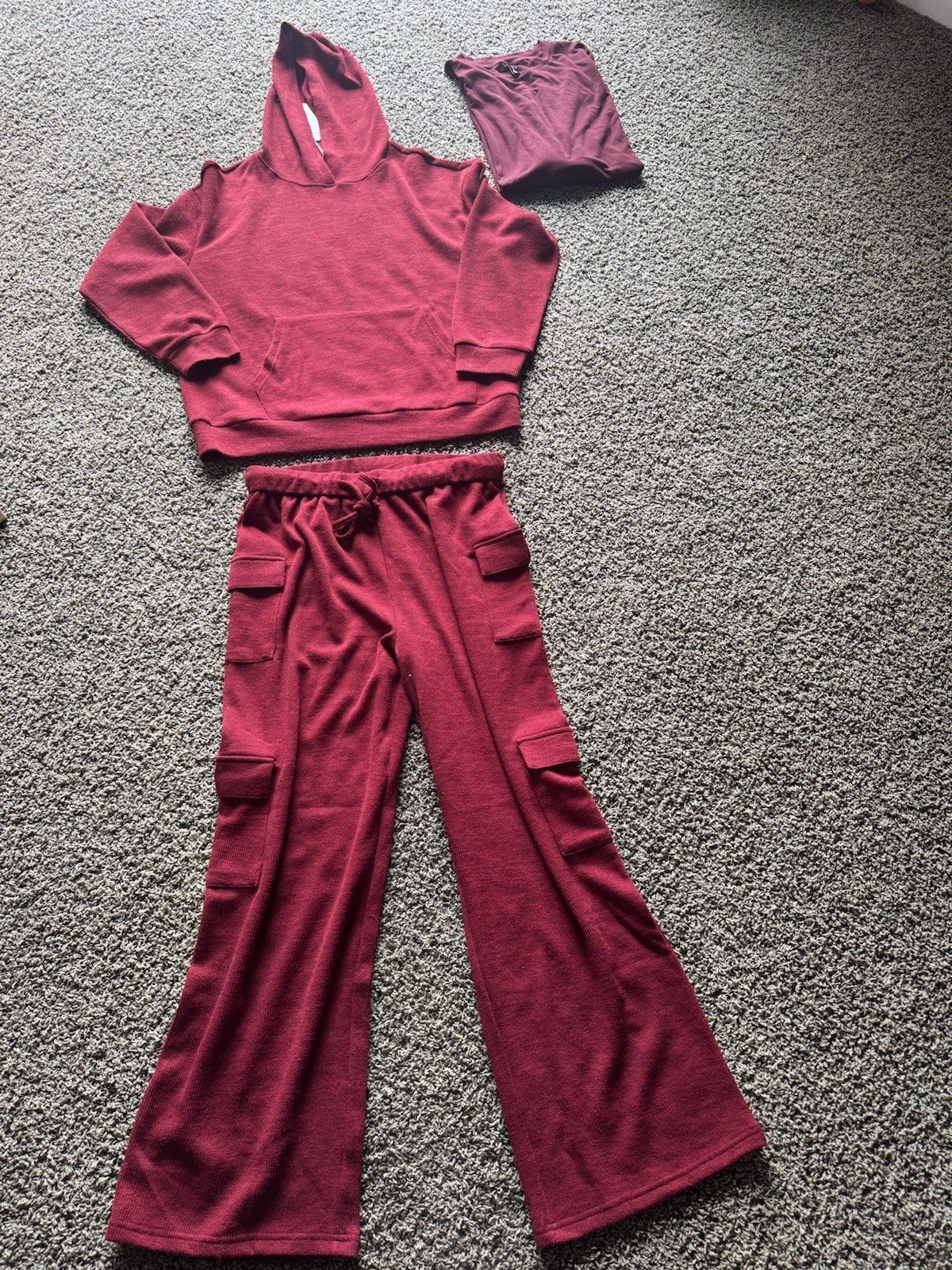 Pretty Garden 3-Piece Hoodie Sweatshirt Wide Leg Cargo Set - Large NWT