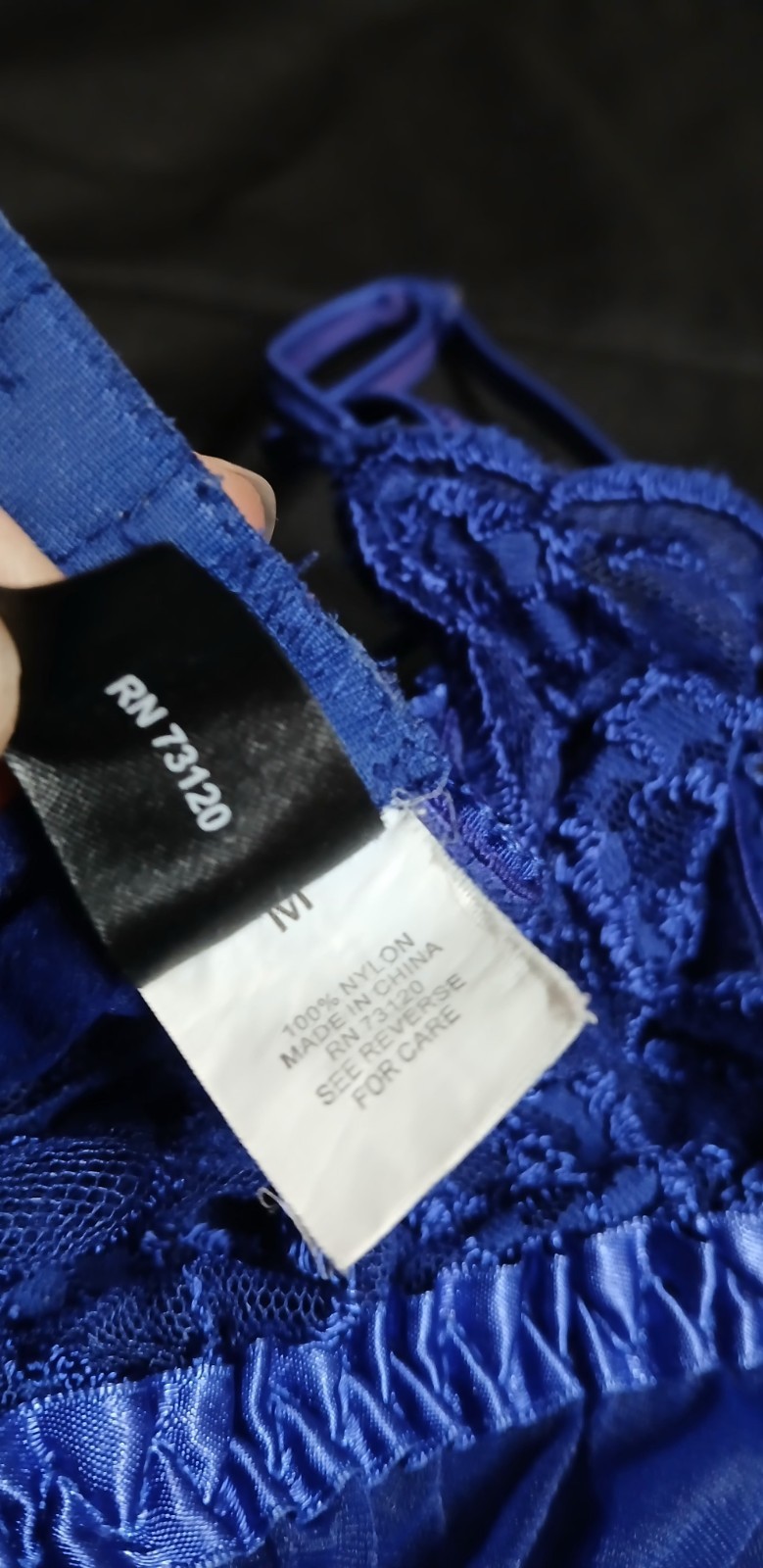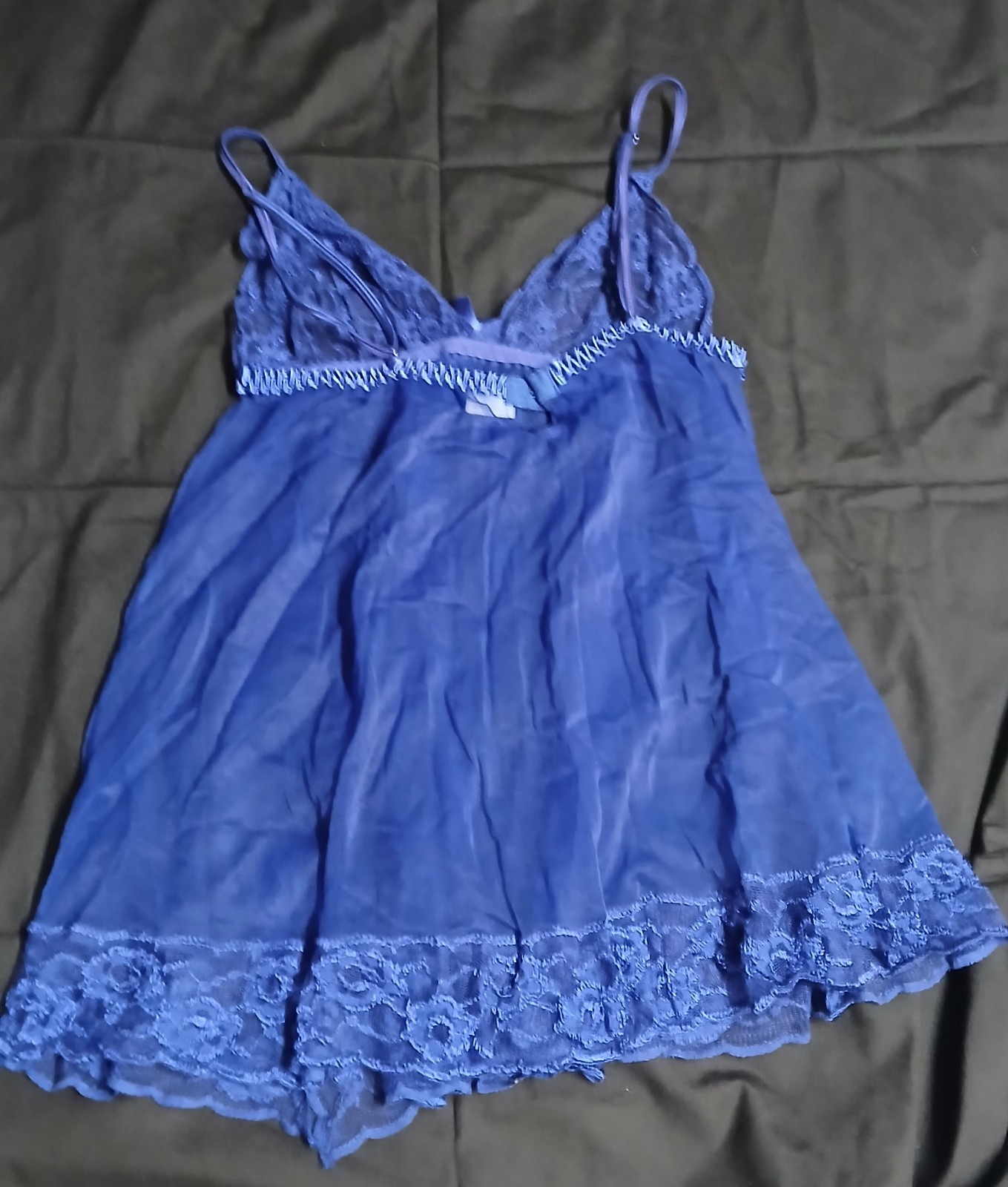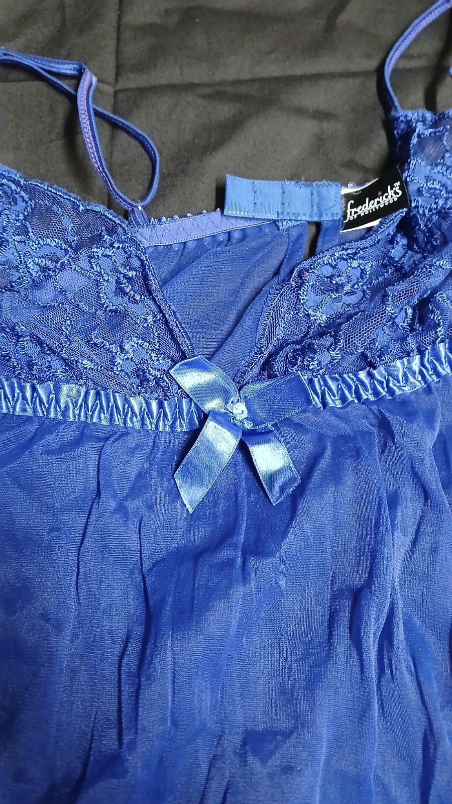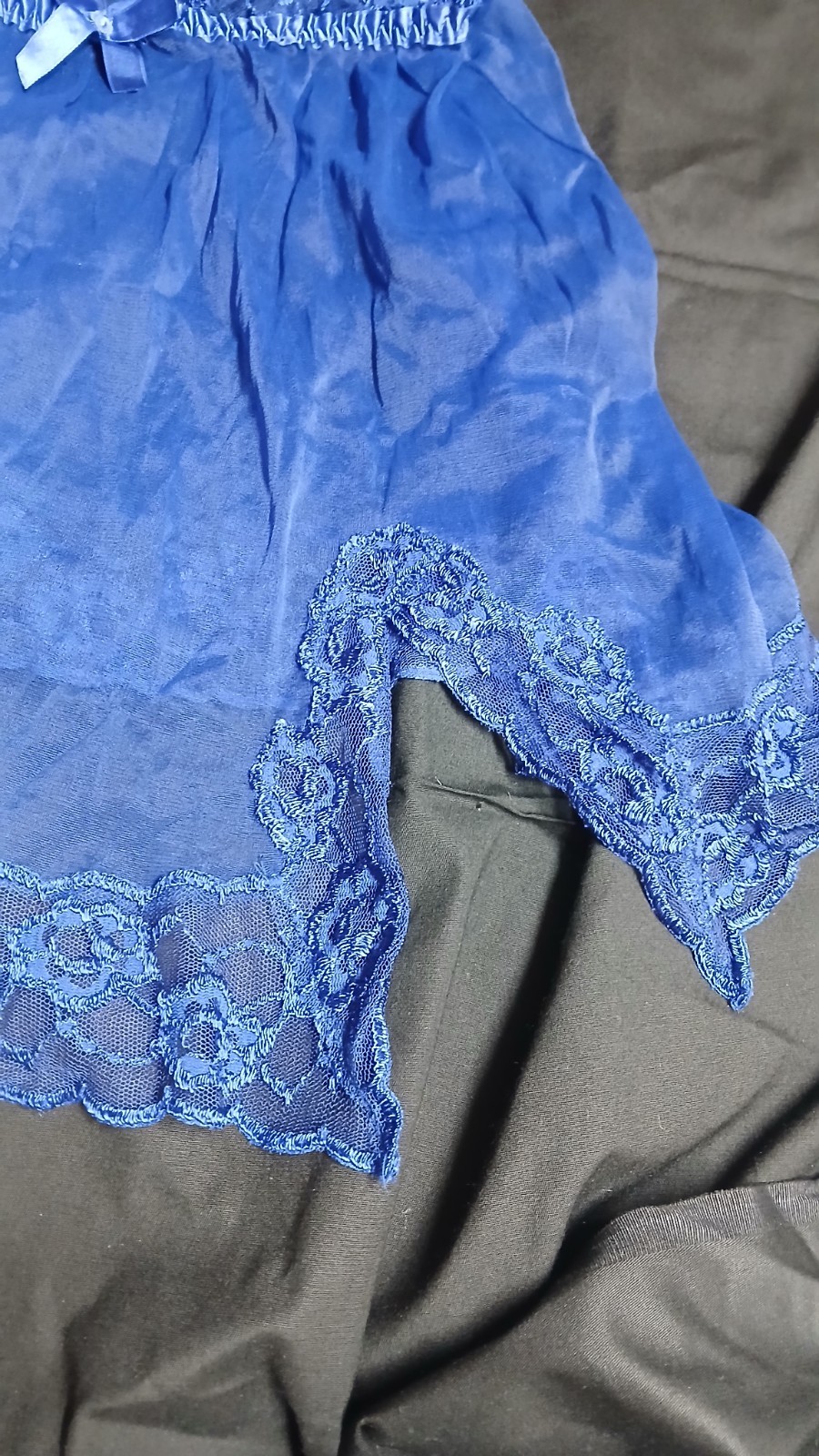 как выглядит Vintage FREDERICKS OF HOLLYWOOD Babydoll Chemise Slip Sz M Blue Lace Sheer фото