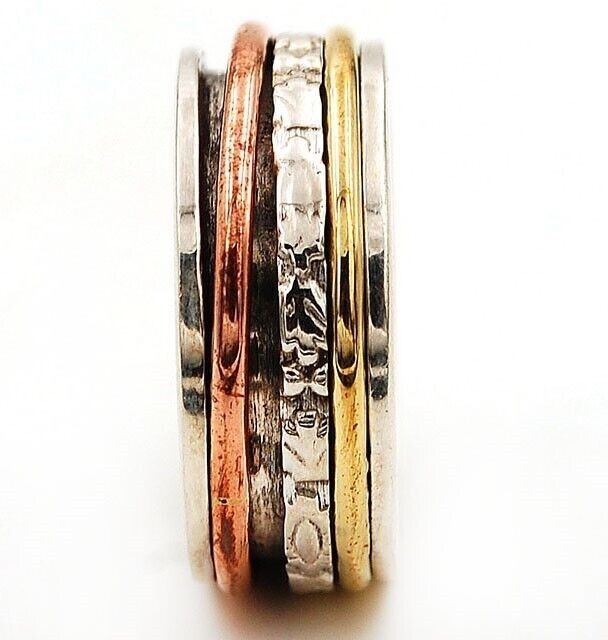 Meditation Spinner Band 925 Solid Sterling Silver Ring Sz 6.5