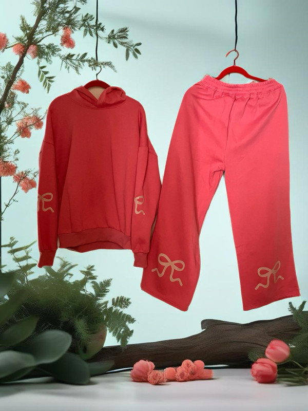 Women's Jogging Suit With Hoodie Large Pink Poly/Cotton
