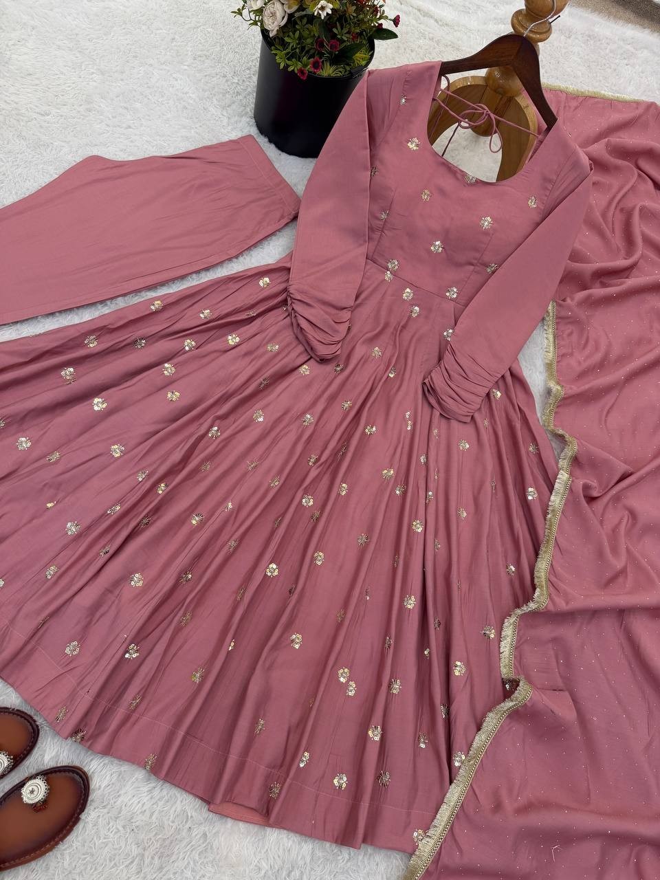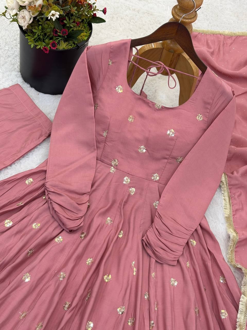как выглядит Attractive Look Roman Silk Pink Gown Bottom With Dupatta For Traditiona Wear фото