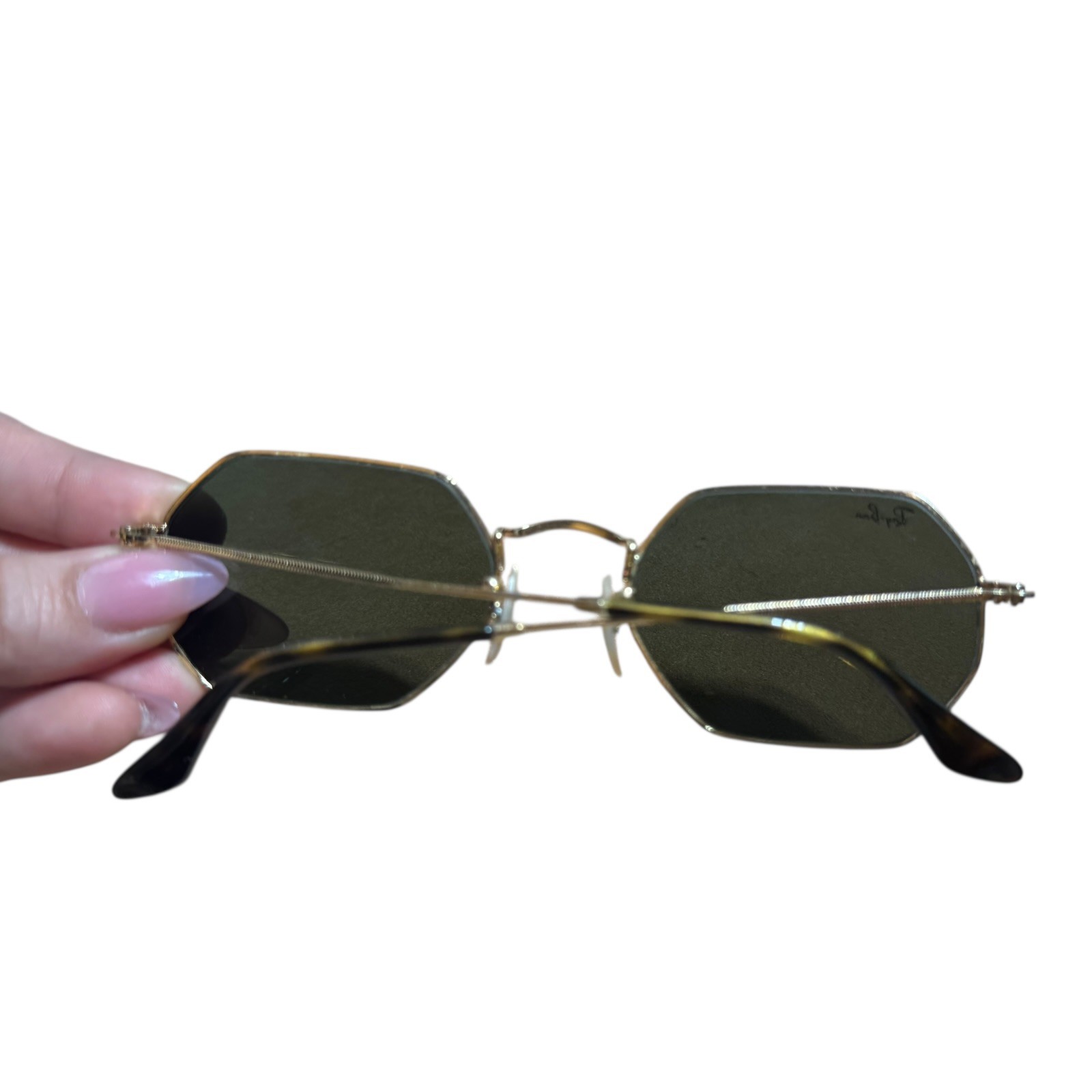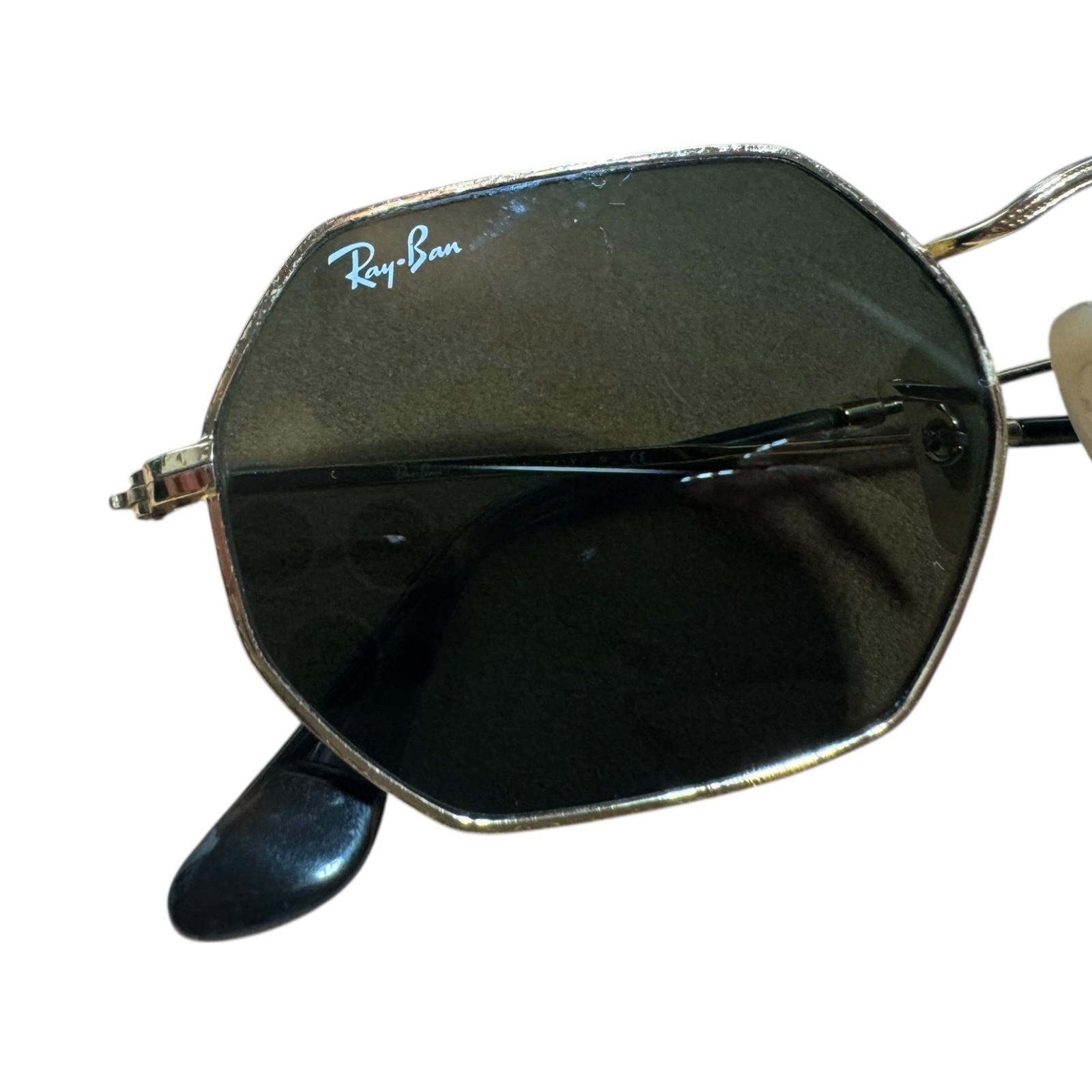 как выглядит Rayban Octagonal RB3556 53mm Gold Frame Black Lenses фото