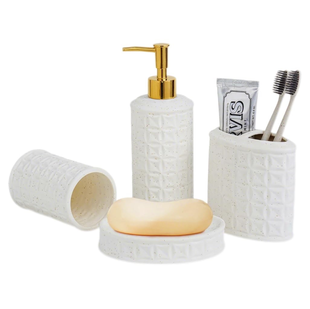 Bathroom Accessories Set 4 Pcs - Ceramic Soap Dispenser, Toothbrush Holder, T...