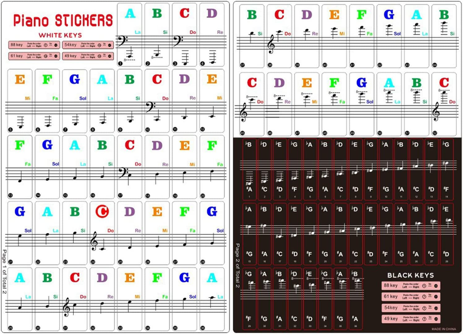 Piano Keyboard Stickers for 88/61/54/49/37 Key, Bold Large Letter Piano Stickers