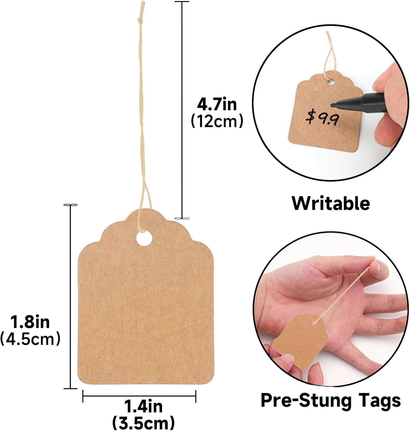 500Pcs Blank Tags with String, Brown Price Tags, 1.8x1.4Inch Kraft Paper Hang...