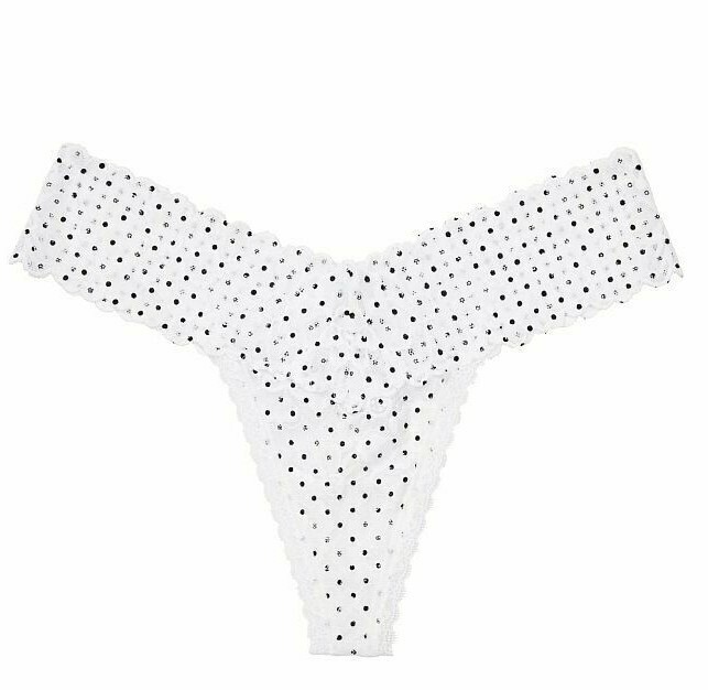 как выглядит Victorias Secret The Lacie Floral Lace Thong Panty White with Black Dots M Nwt фото