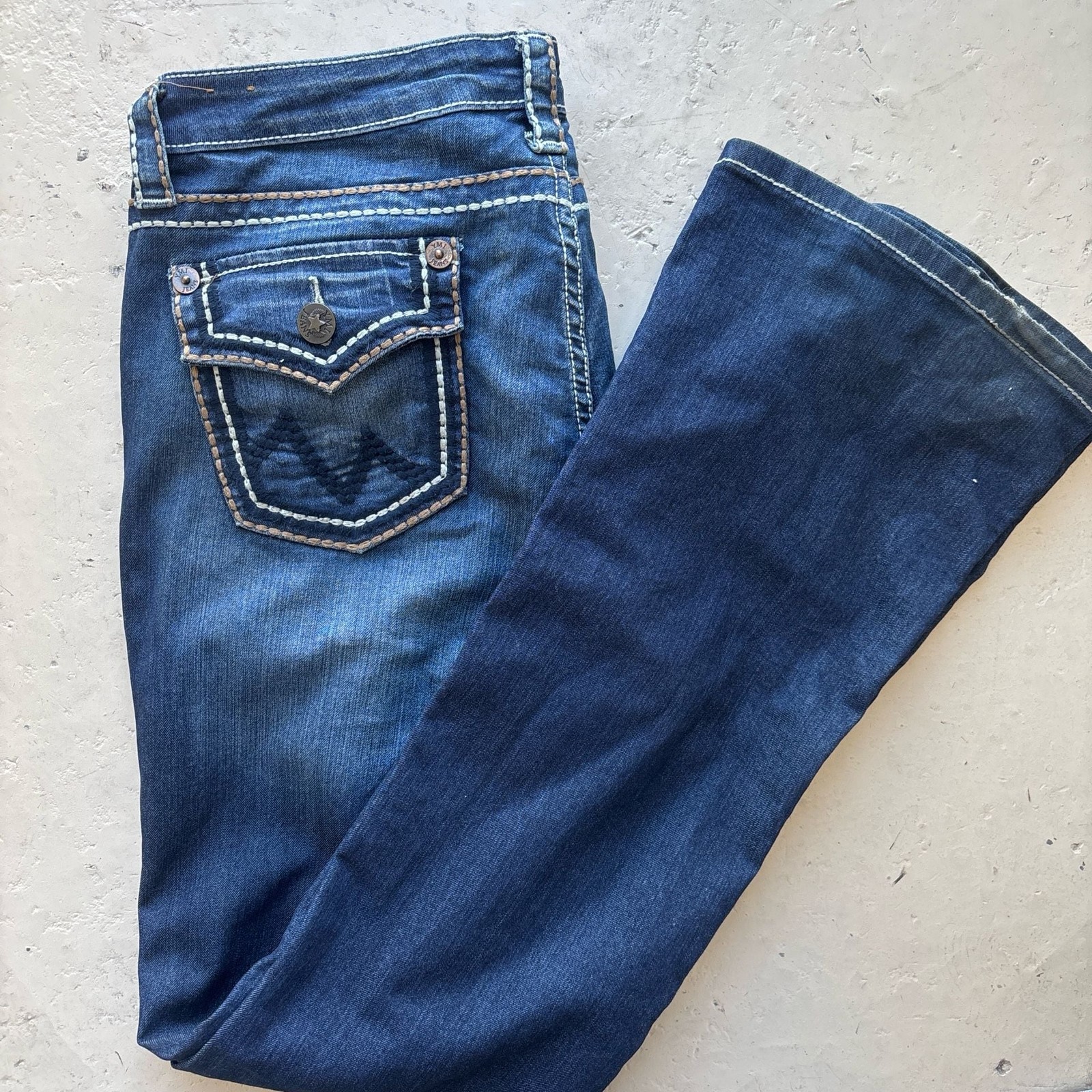 как выглядит YMI Wannabebetabutta Mid Rise Bootcut Jeans With Embellished Pockets фото