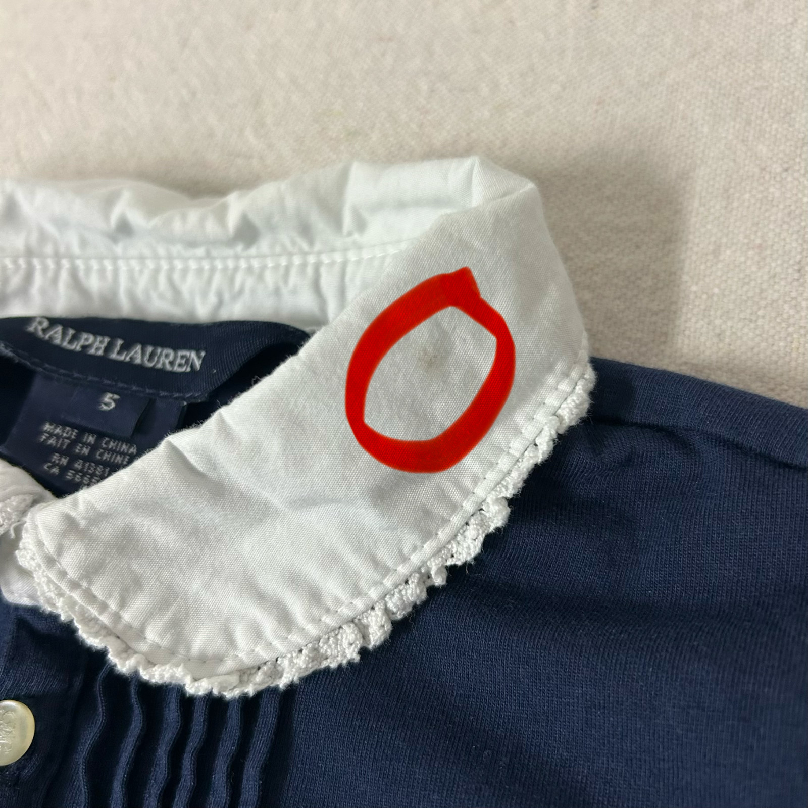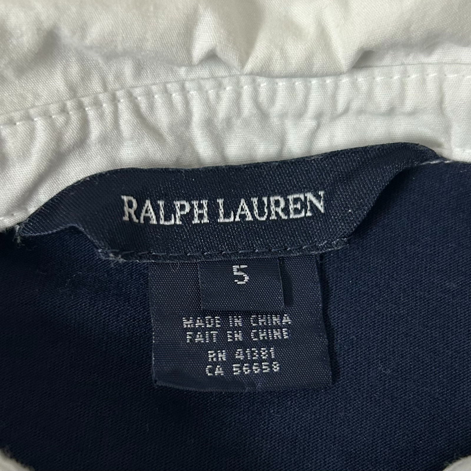 как выглядит Ralph Lauren Dress Little Girls 5 Navy Blue White Collar Long Sleeve Drop Waist фото