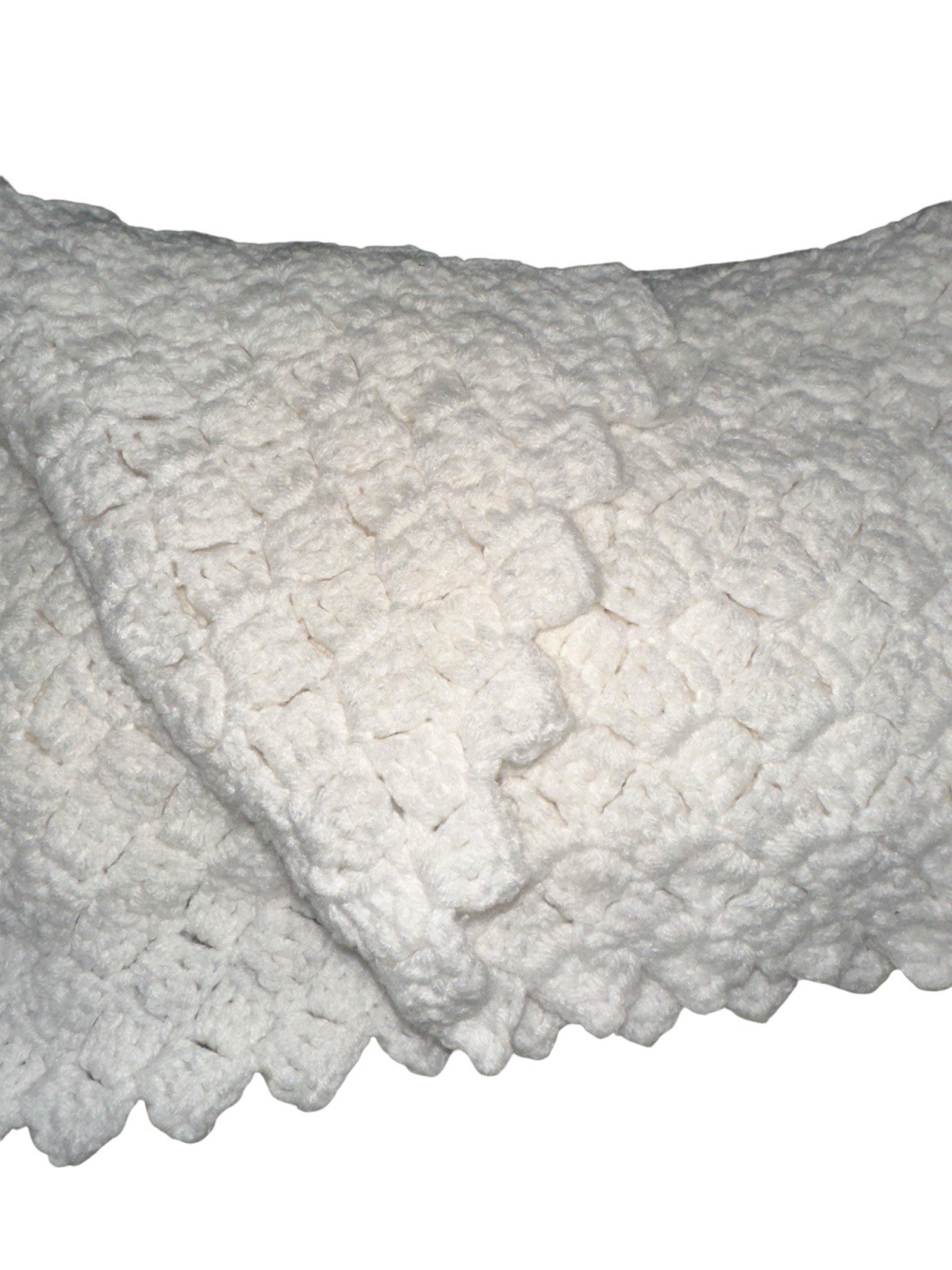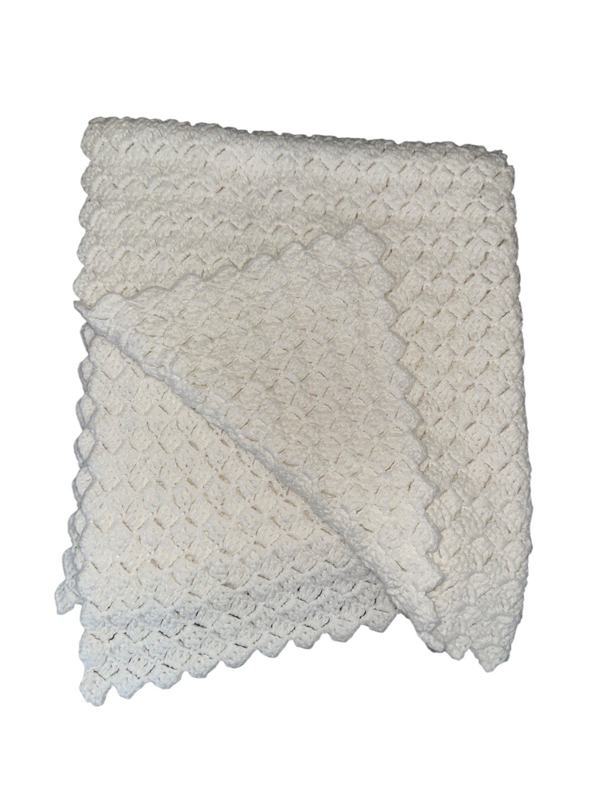 Handmade White Crochet Baby Blanket Vintage Heirloom Style Nursery Gift 35in