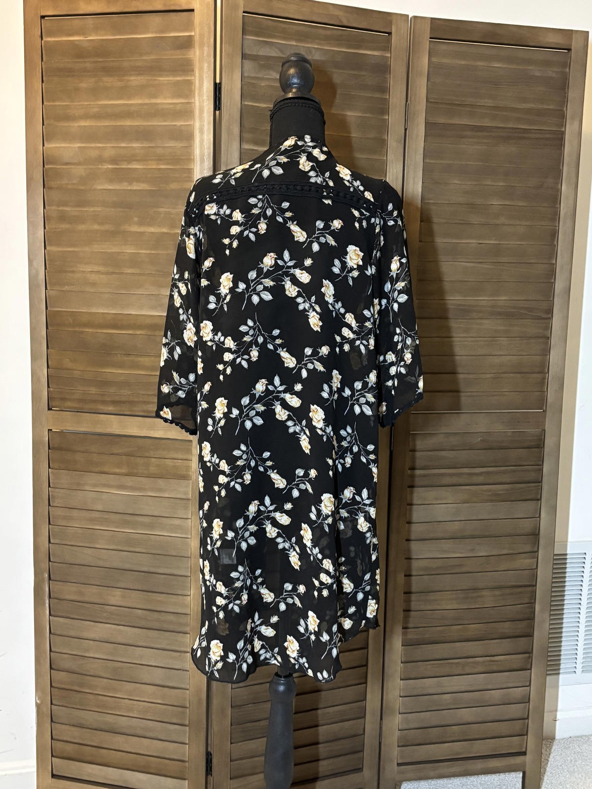 как выглядит Black Floral Sheer Kimono Cardigan фото