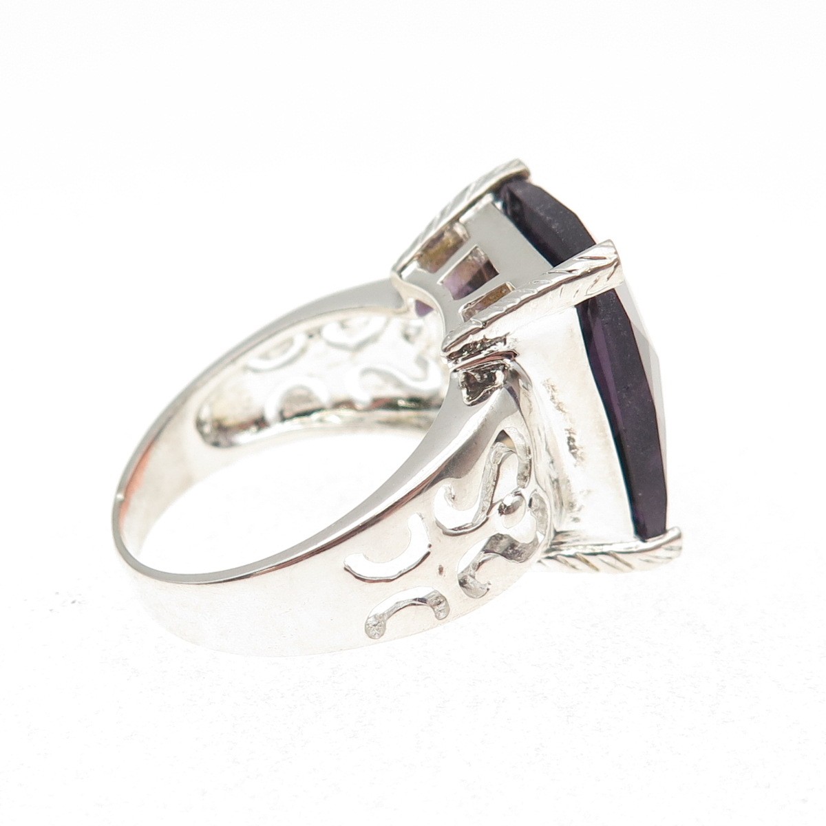 925 Sterling Silver Vintage Real Amethyst Ornate Statement Ring Size 8