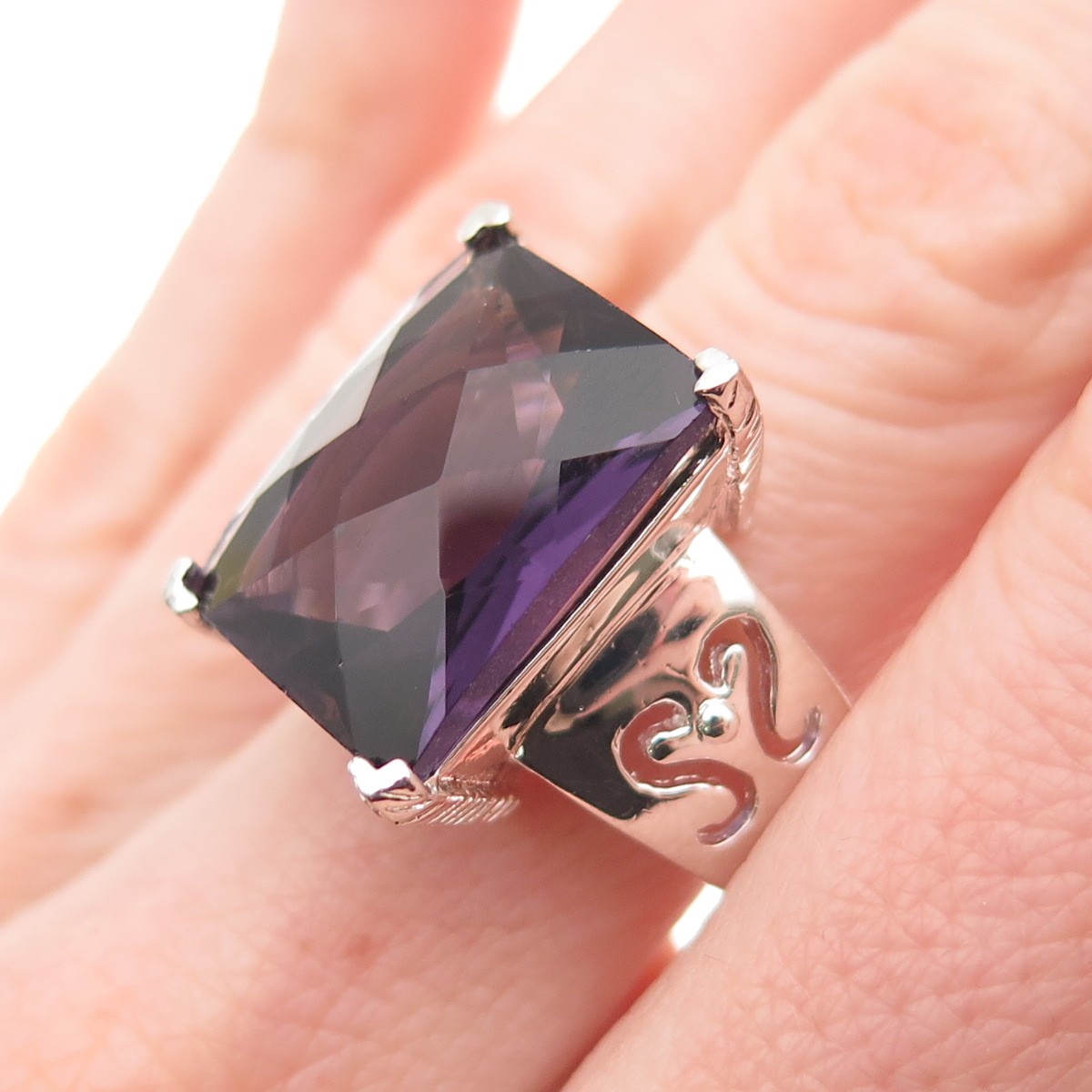 как выглядит 925 Sterling Silver Vintage Real Amethyst Ornate Statement Ring Size 8 фото