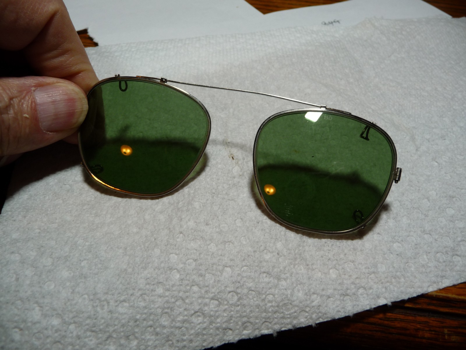 как выглядит SUN GOGGLES GLASSES CLIP ON DARK GREEN VINTAGE, ANTIQUE фото
