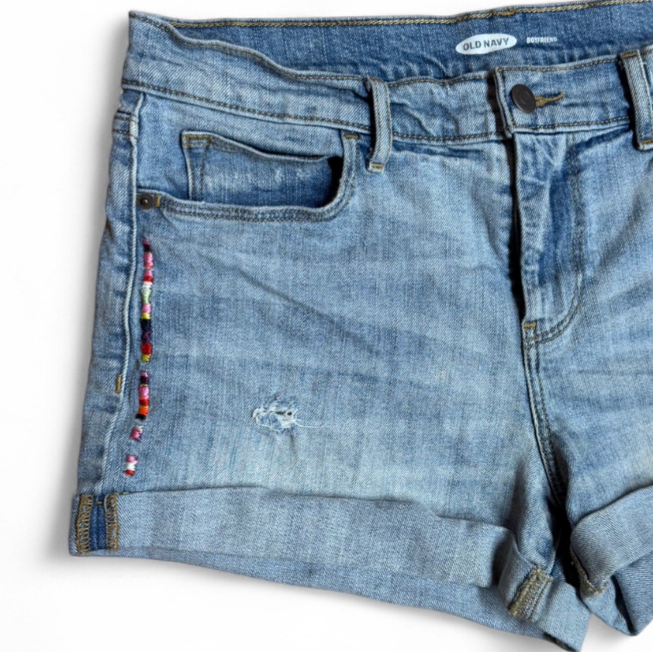 как выглядит Old Navy "Boyfriend" Mid-Rise Distressed Denim Shorts - Size 8 фото