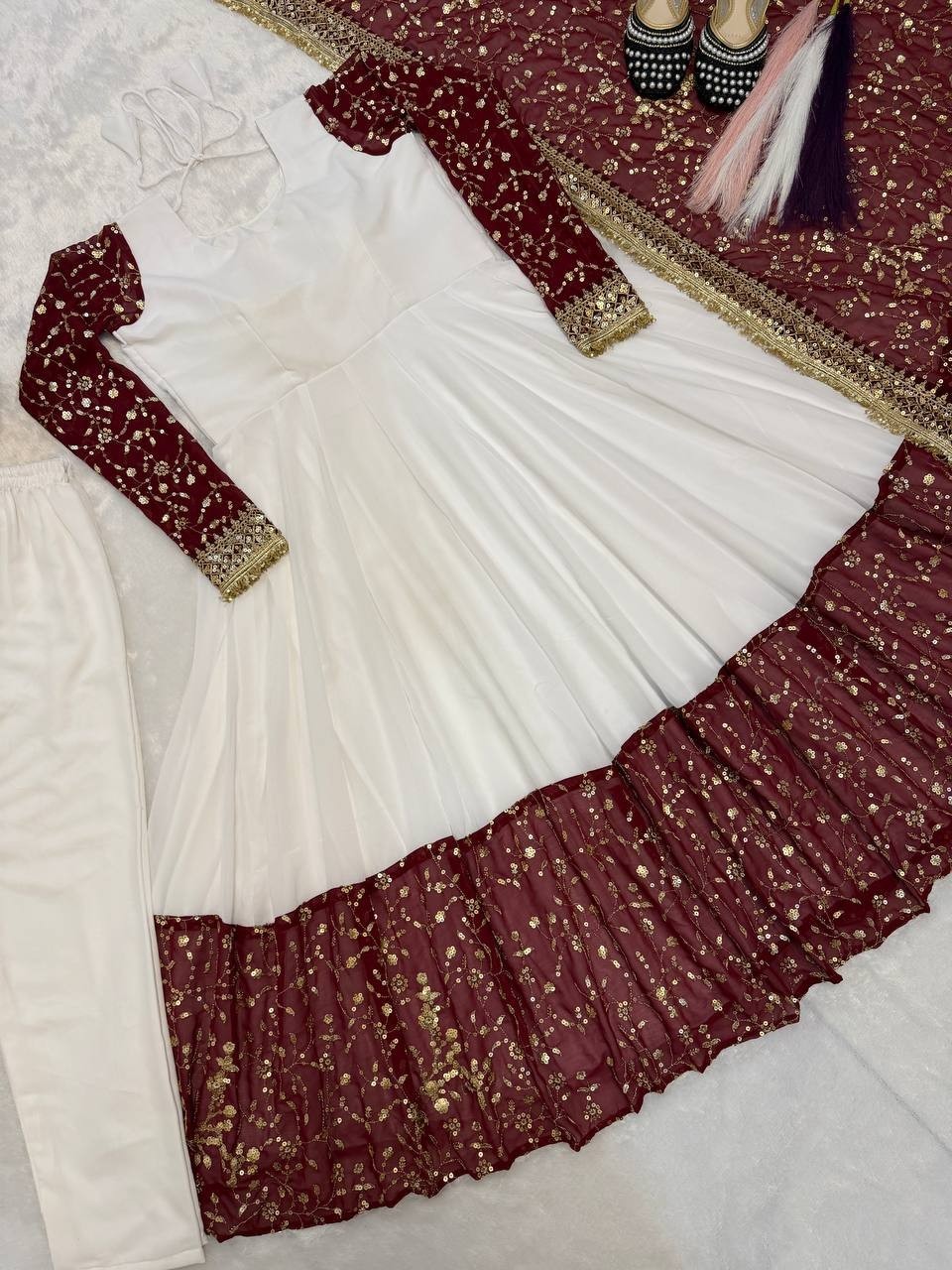 как выглядит Stunning Look Pure Faux Georgette White Gown Bottom With Dupatta For Women Wear фото