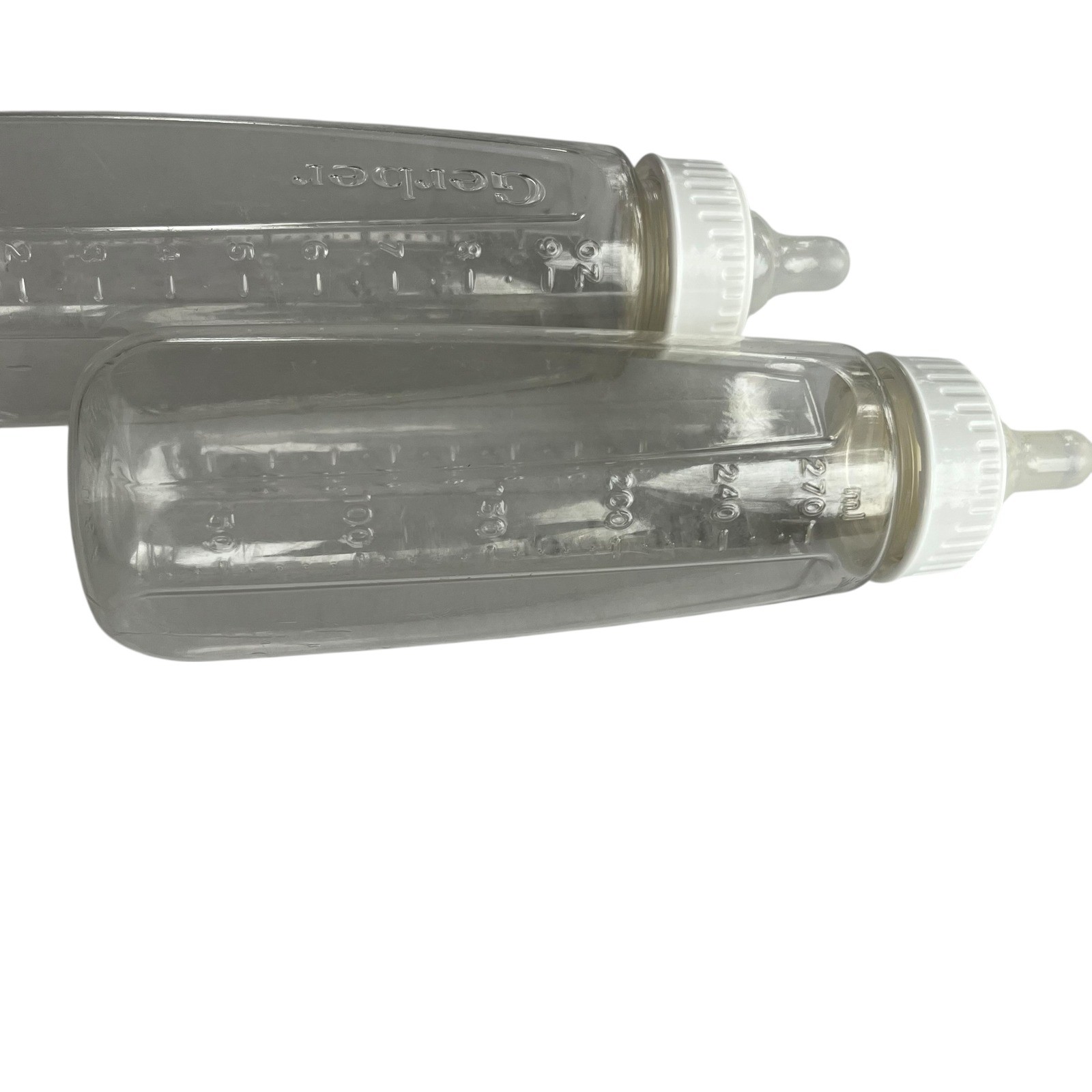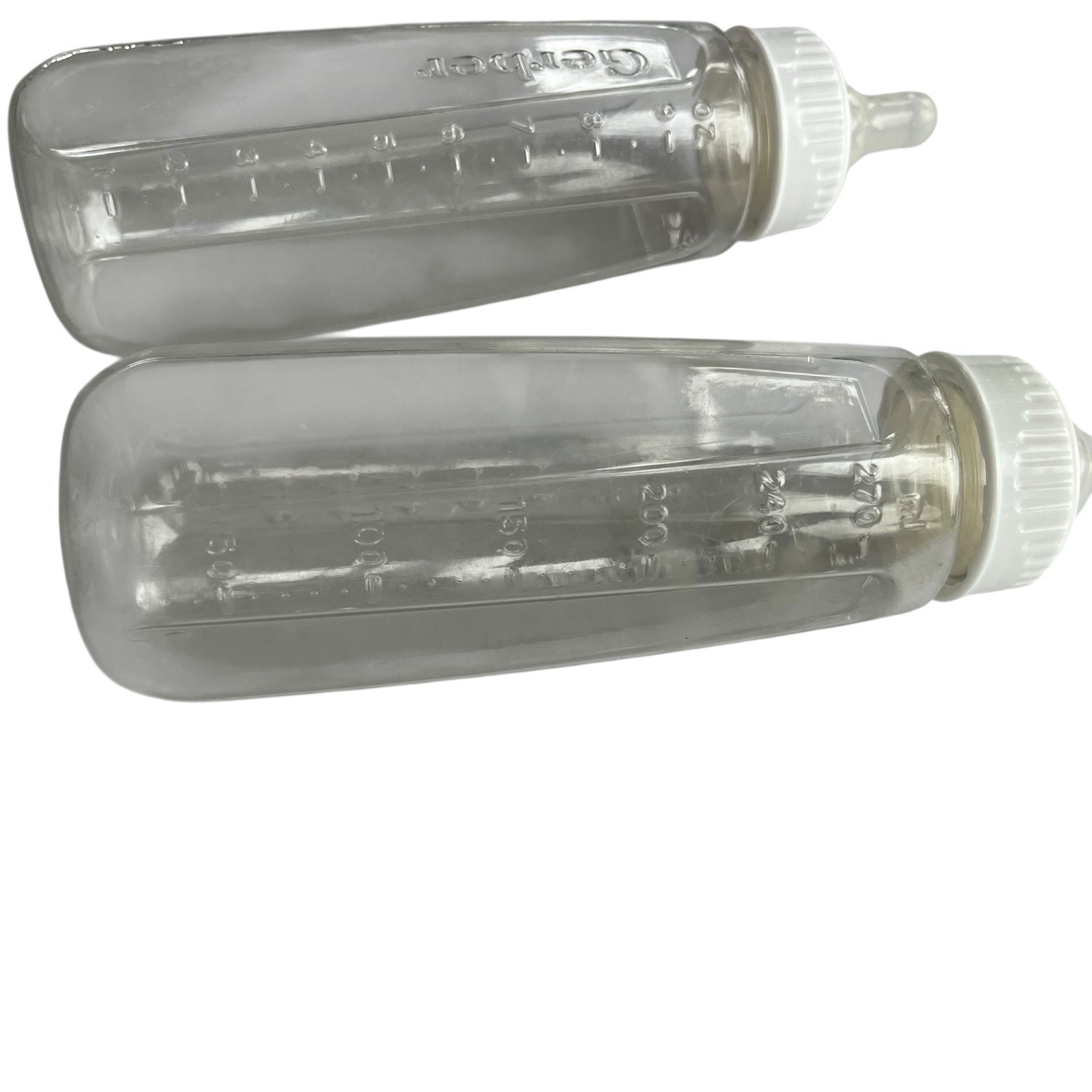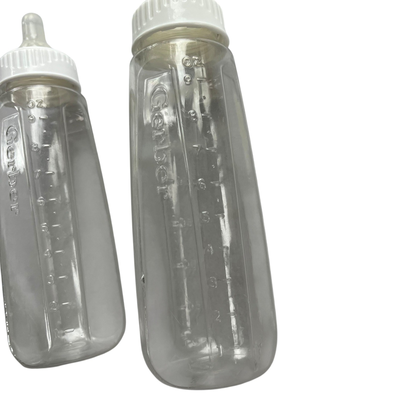 Vintage Gerber Baby Bottles 9oz Clear Plastic with White Caps Nipples Set of 3