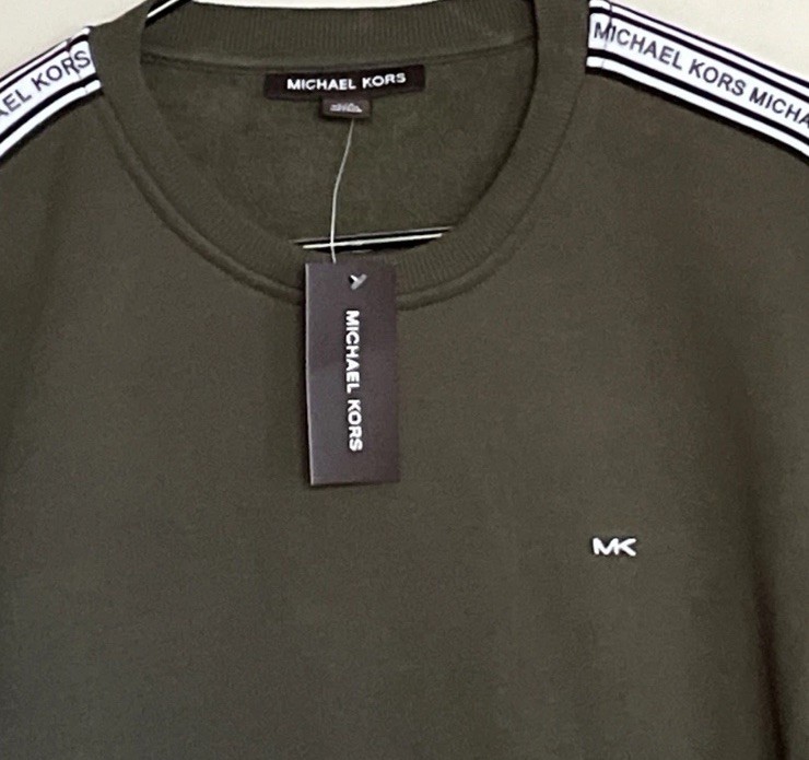 128 Michael Kors Olive Logo Striped Trim Crewneck Pullover Sweatshirt women's S