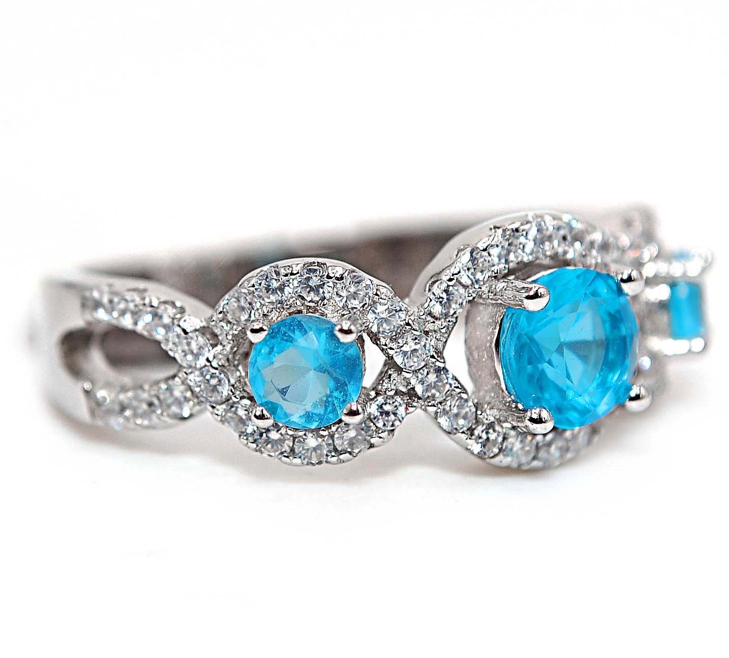 как выглядит 2CT Blue Topaz White Topaz 925 Solid Sterling Silver Ring Jewelry Sz 8 фото