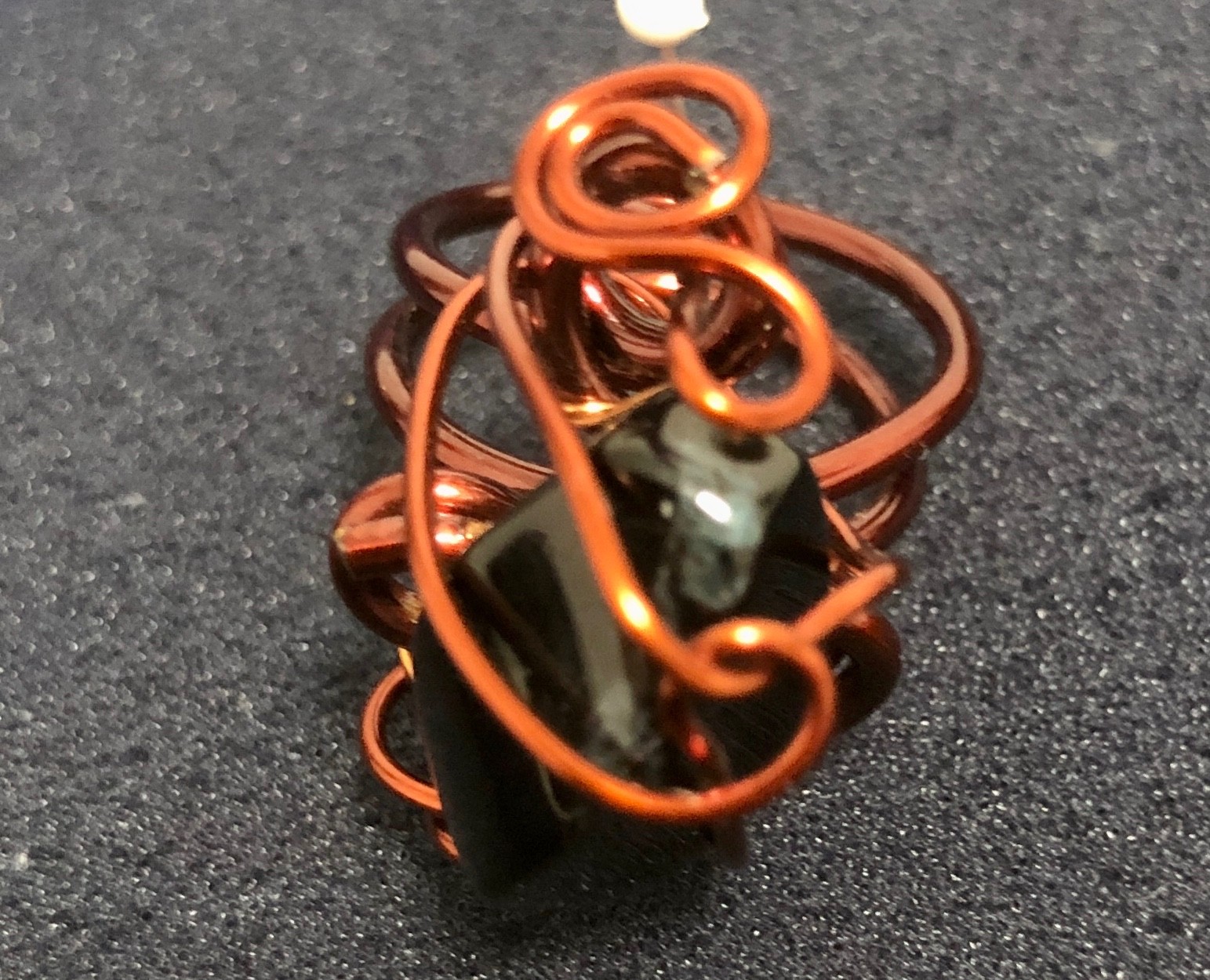 как выглядит Wire wrapped ring made of cooper and a natural black stone, Handcrafted фото