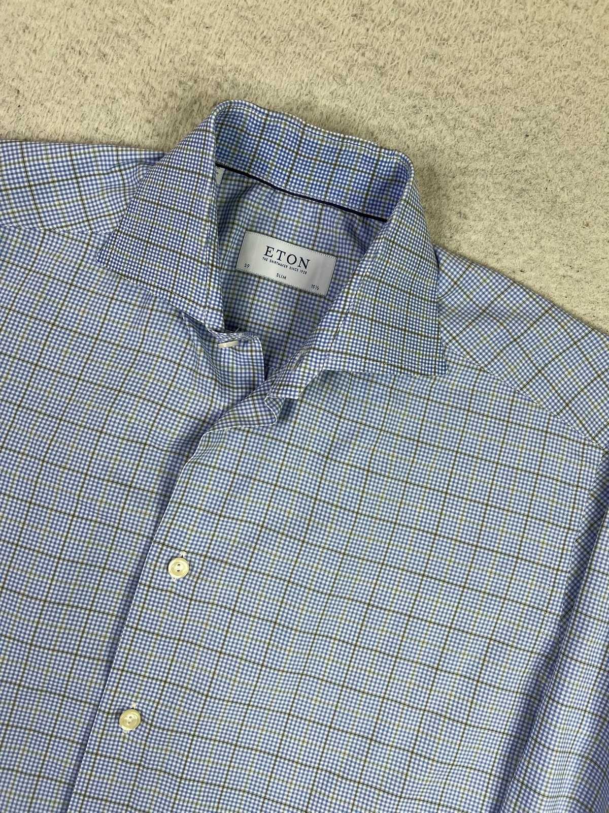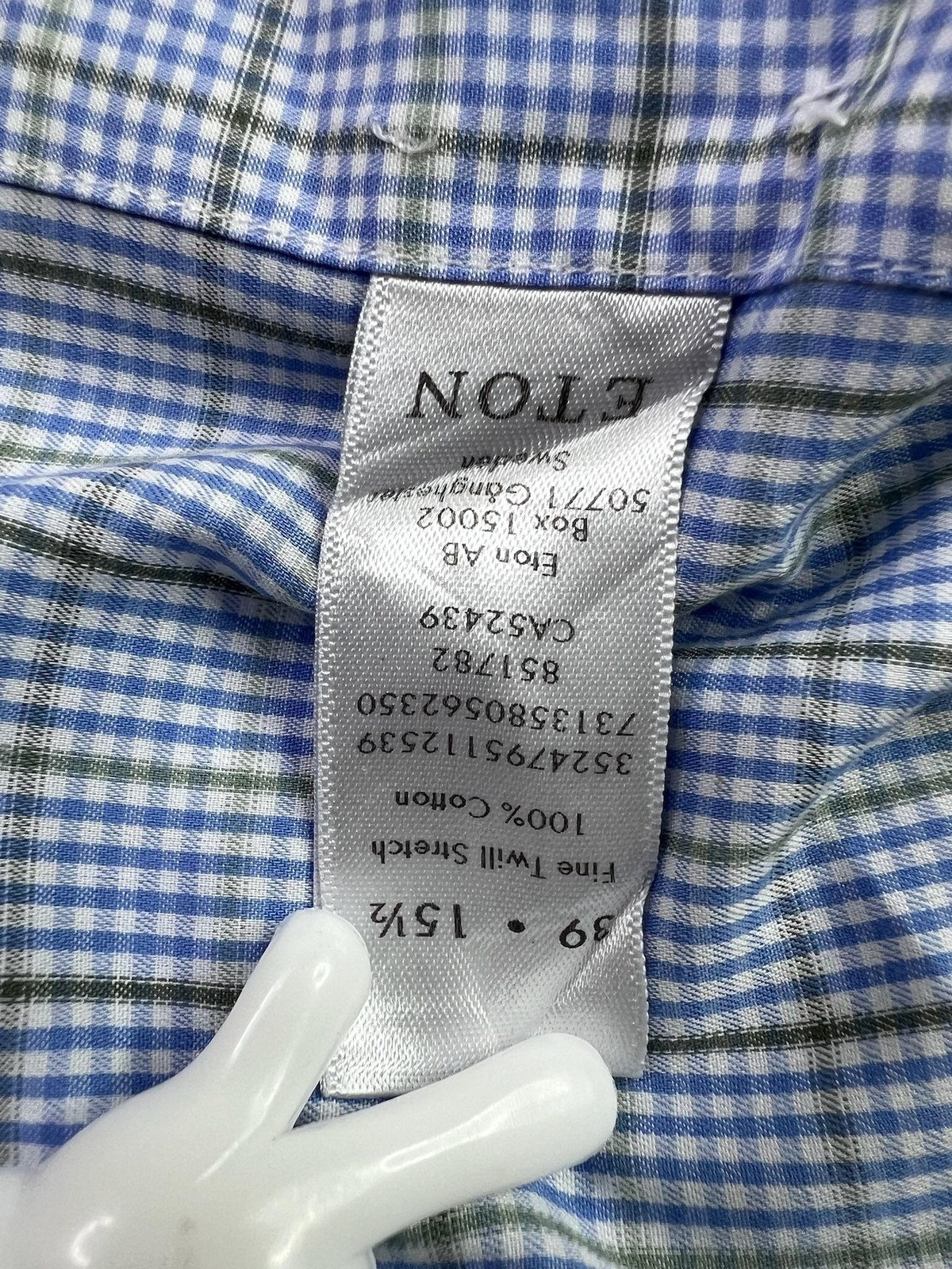 Eton Dress Shirt Mens 15.5 39 Blue Check Slim Fit Long Sleeve Cotton Twill