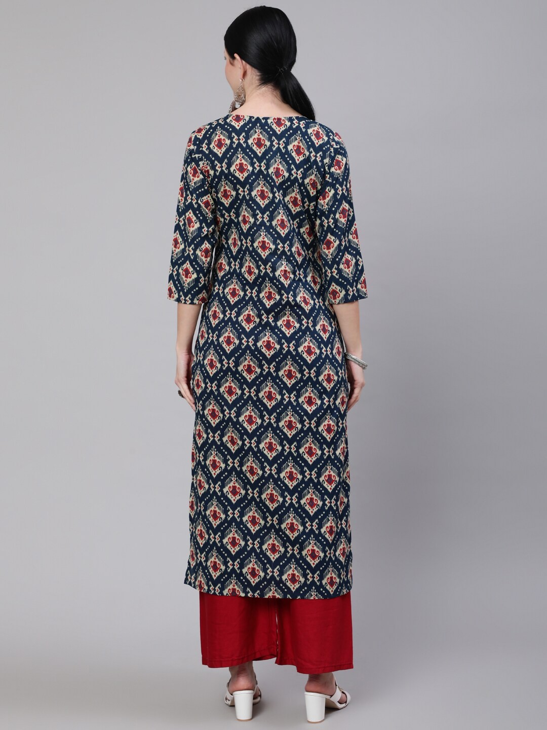 Indian Women Blue Red Cotton Ethnic Motifs Printed Kurta Kurti Top Tunic Dress