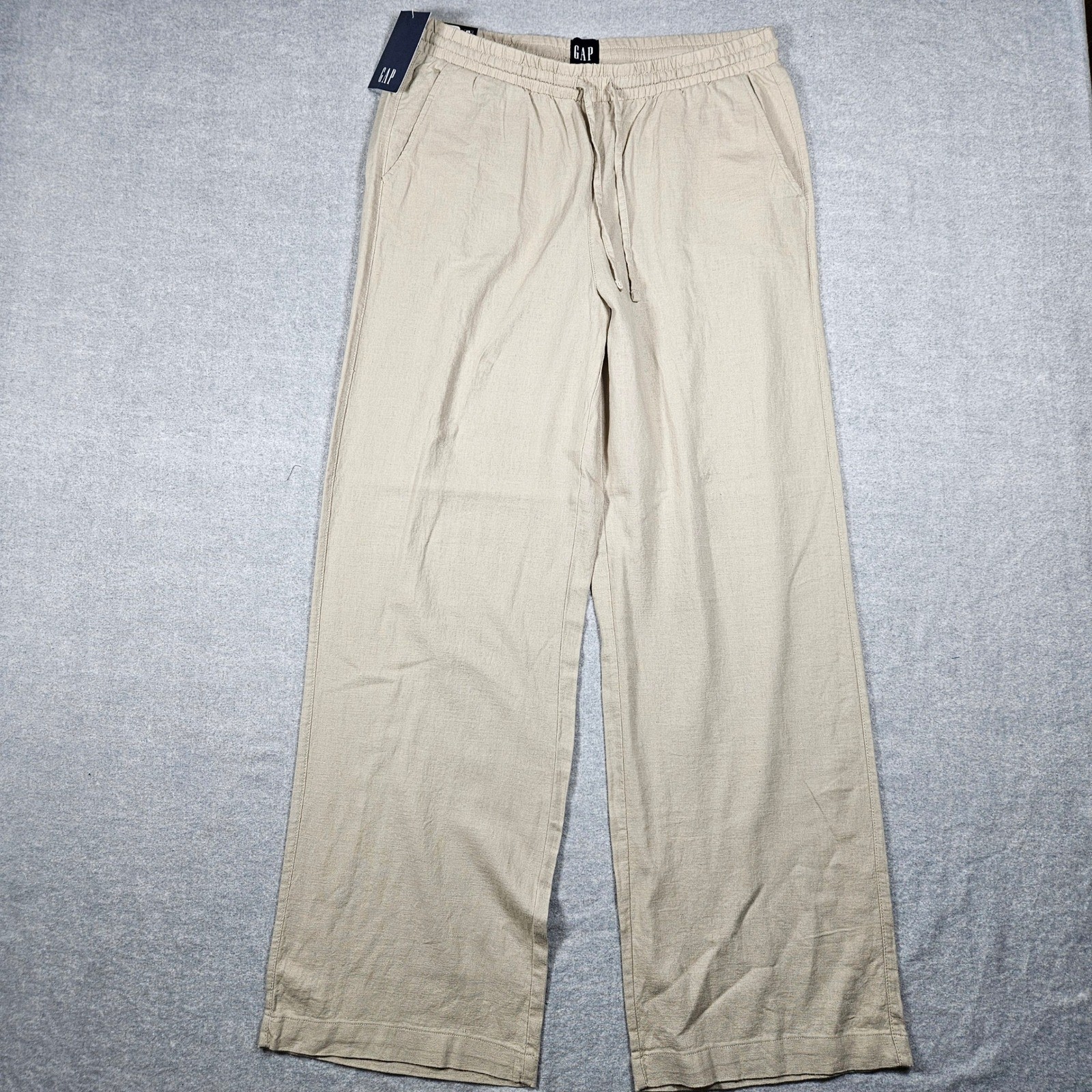 как выглядит NEW GAP Womens Linen Pull-On Pants Wide Leg Beige Medium NWT GP003393 фото
