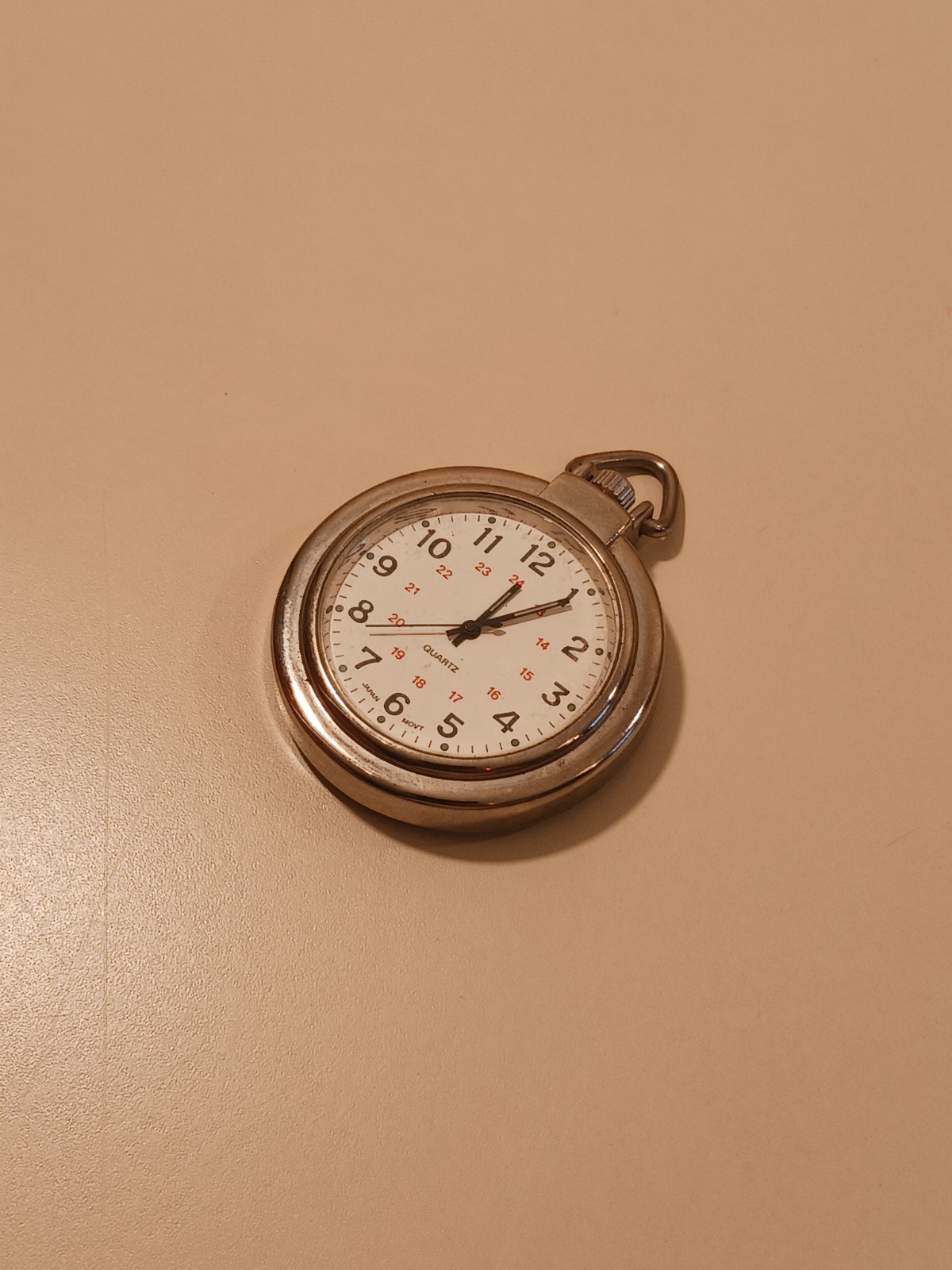как выглядит Silver Tone Quartz Pocket Watch Japan Movt Large Black Arabic Numbers Timepiece фото