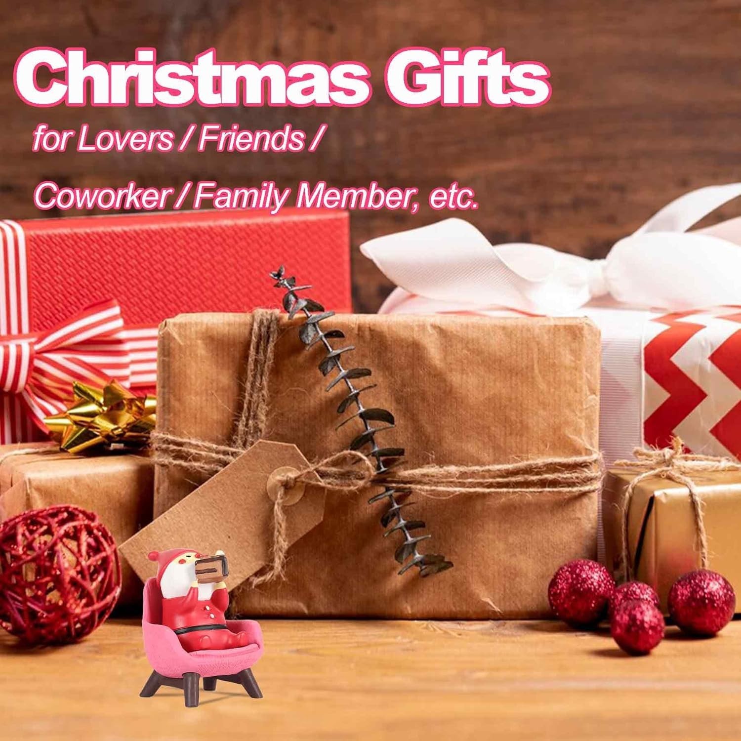 как выглядит Christmas Santa Claus Figurines Mini Figurines Gifts for Women Pink Desk Acce... фото
