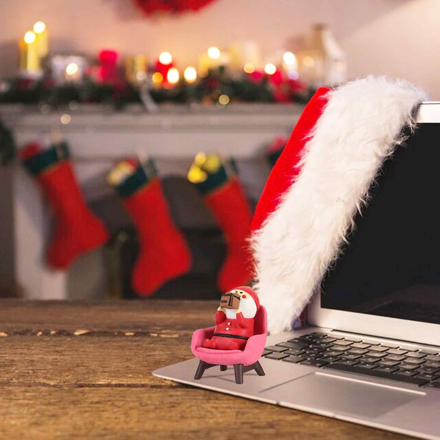 • Christmas Santa Claus Figurines Mini Figurines Gifts for Women Pink Desk Acce...