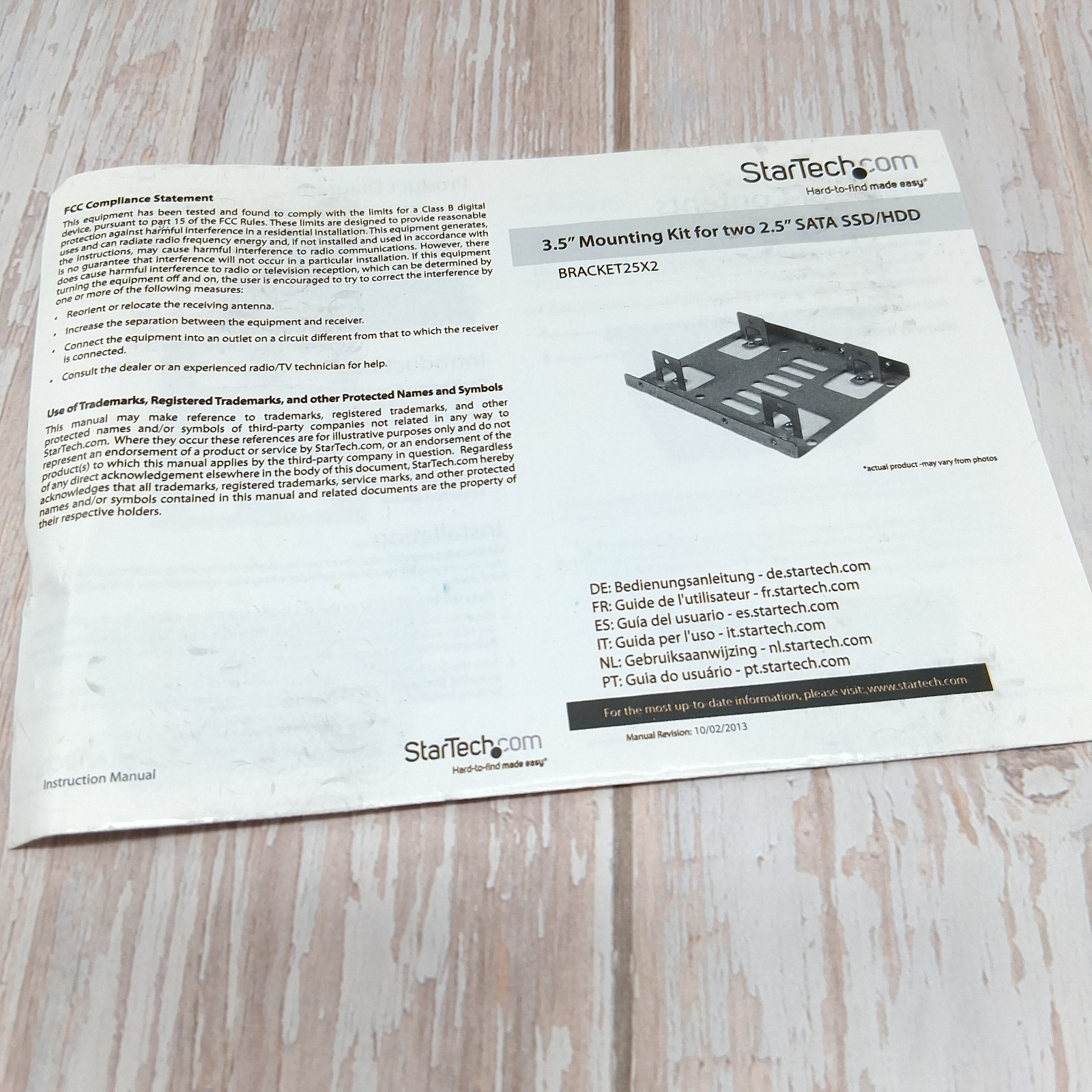 StarTech 3.5 Mounting Kit for 2.5 SATA SSD/HDD Part Bracket25X2 Open Box