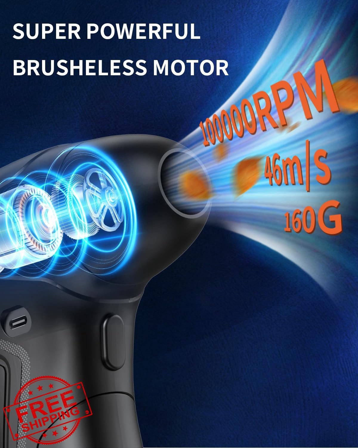 PureWellness Rechargeable Air Duster Cordless Blower 3 Nozzles Black