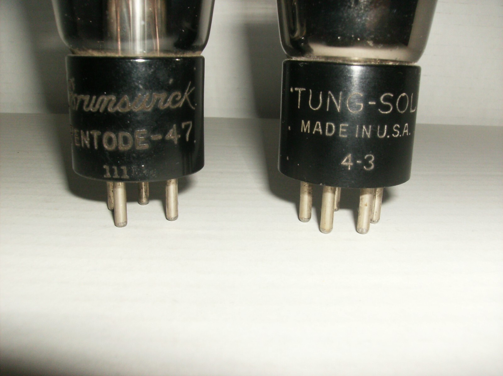 LOT OF 2 - 47 TUNG-SOL , BRUNSWICK ENGRAVED GLOBE RADIO TUBES