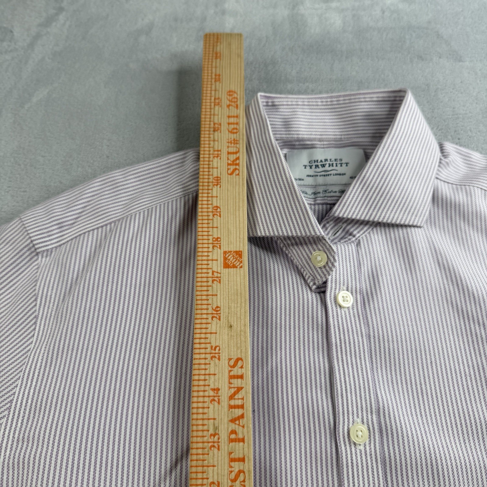 как выглядит Charles Tyrwhitt Non Iron Dress Shirt 16.5 36 Extra Slim Fit Striped Oxford OCBD фото