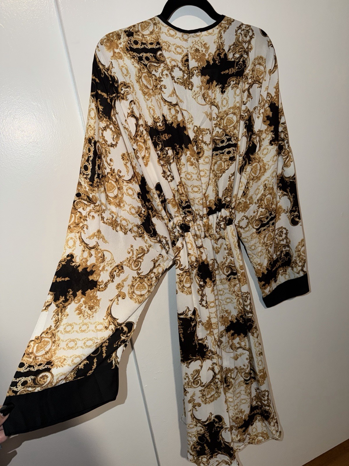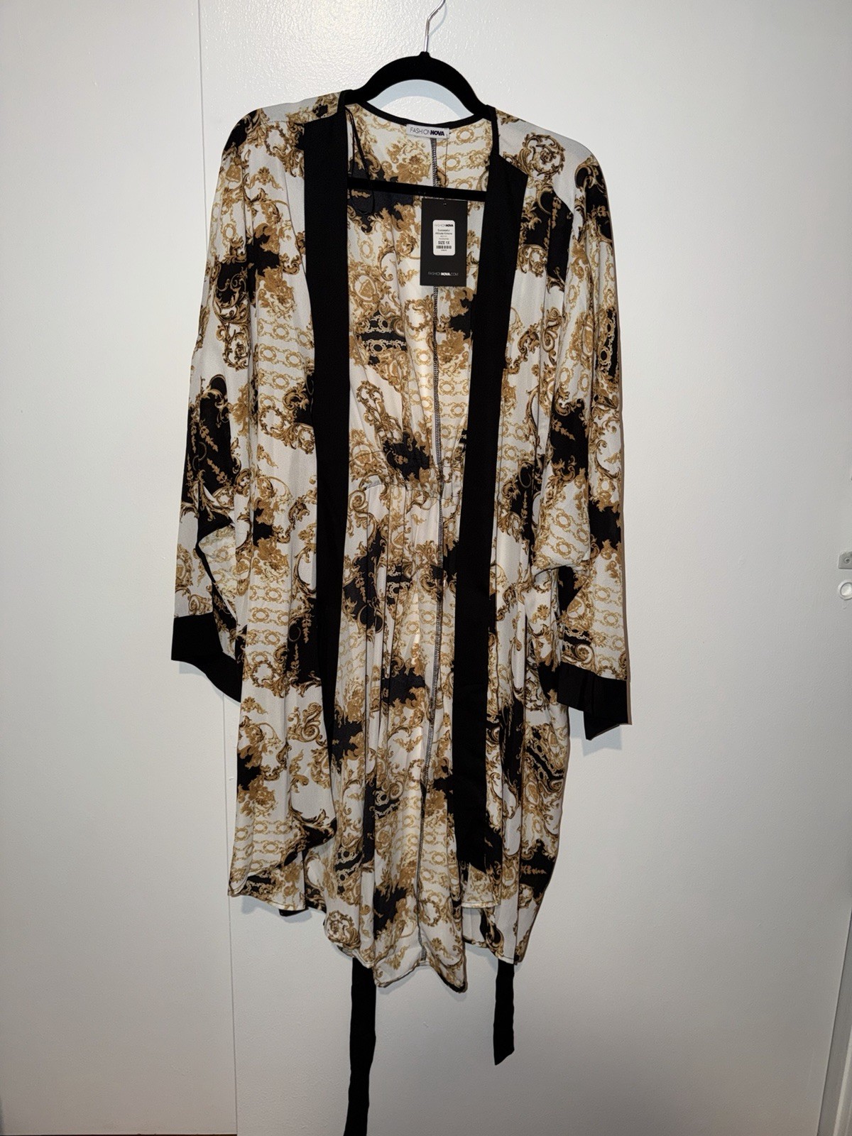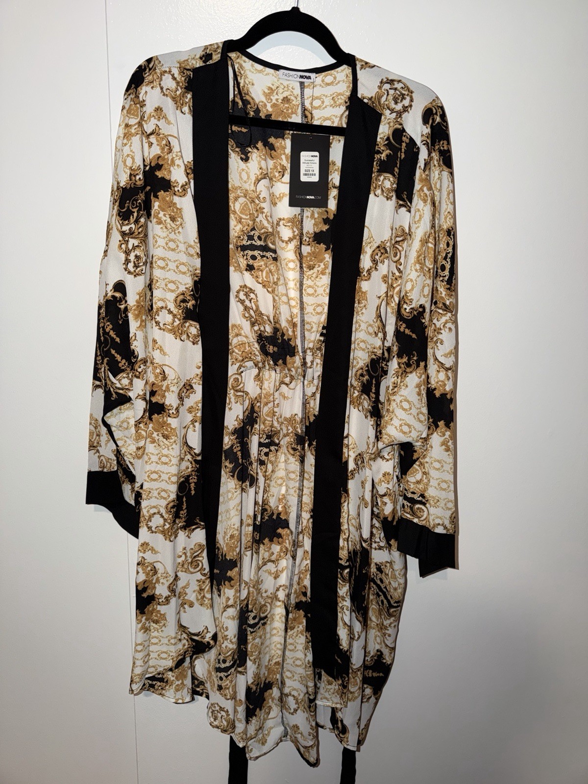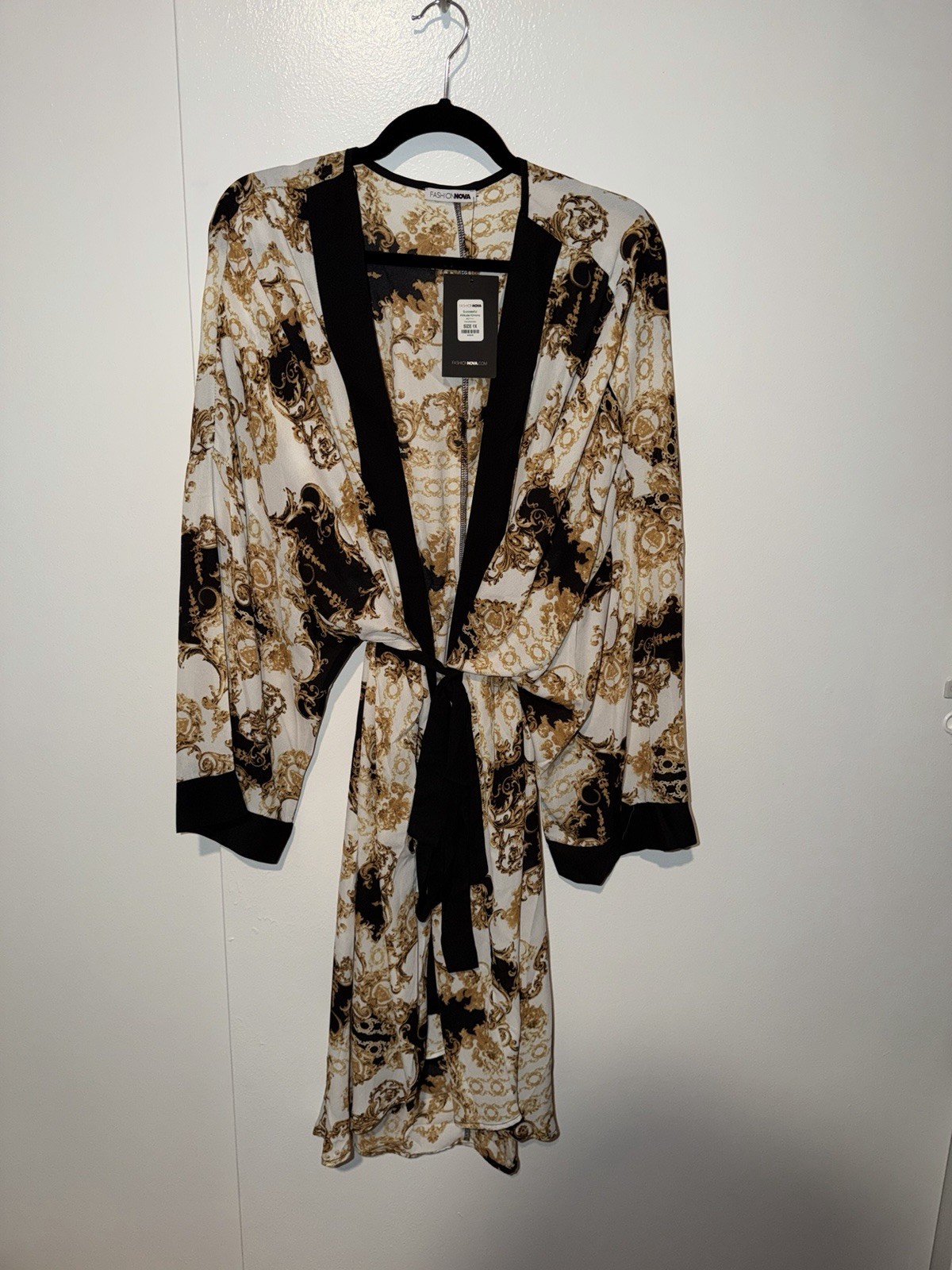 как выглядит Long Sleeve Waist Tie Kimono Duster Top Size 1X фото