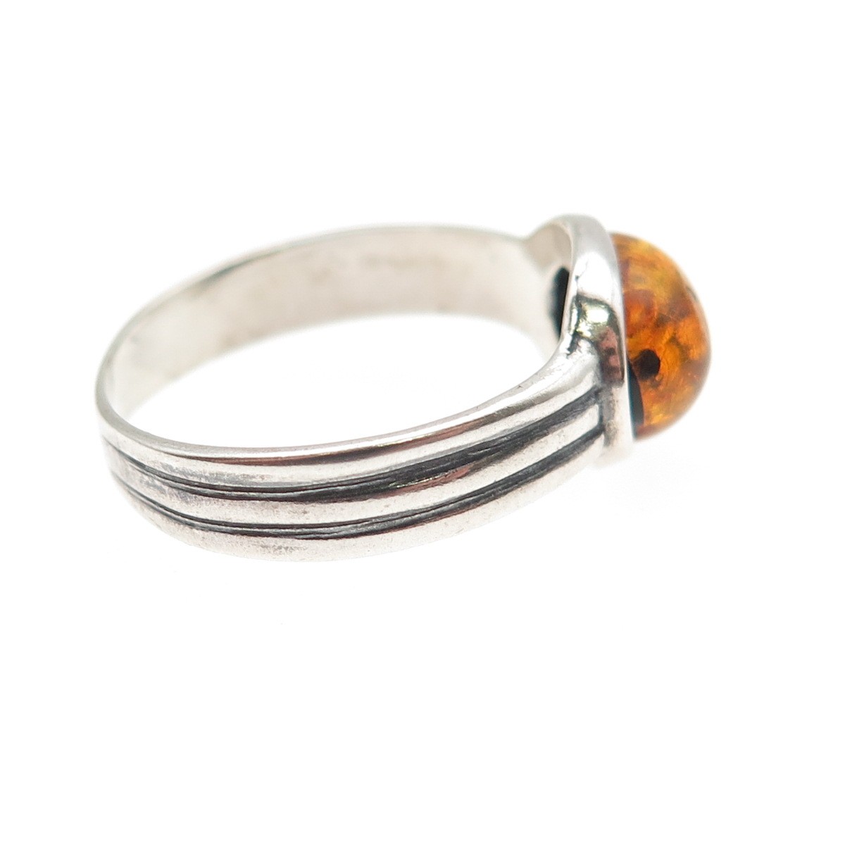 925 Sterling Silver Vintage Real Amber Oxidized Ring Size 8