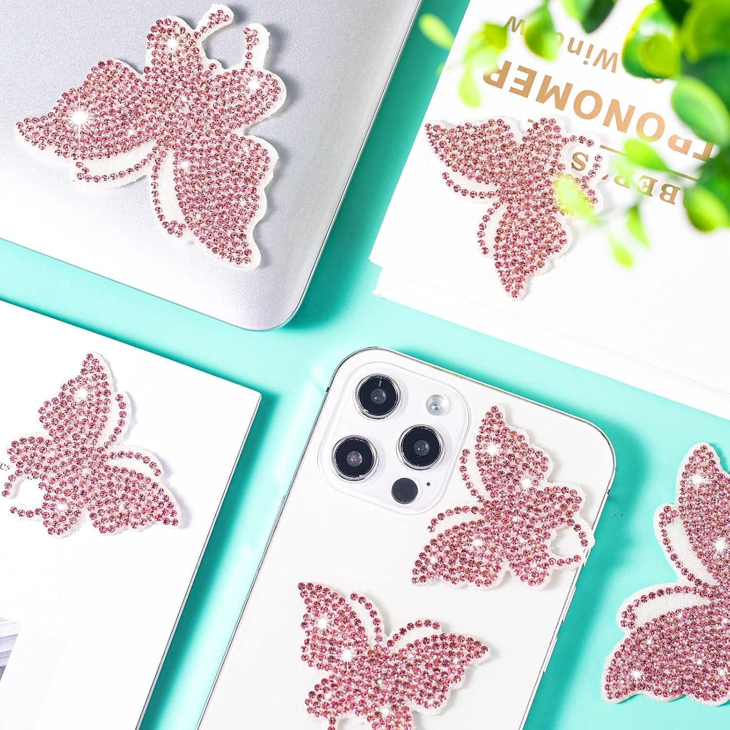 8 Pcs Bling Butterfly Car Decals Crystal Rhinestone Shiny Butterfly Pink